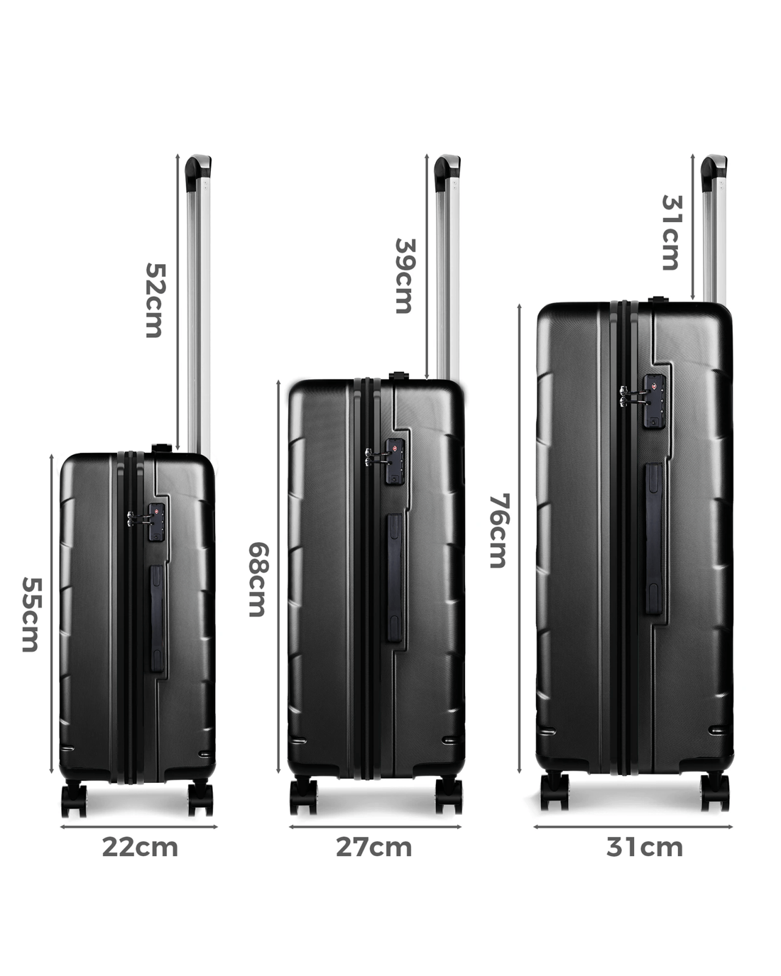 Elevate your travel experience with the ALFORDSON 20" 24" 28" suitcase set - because every journey deserves the best in convenience and style.