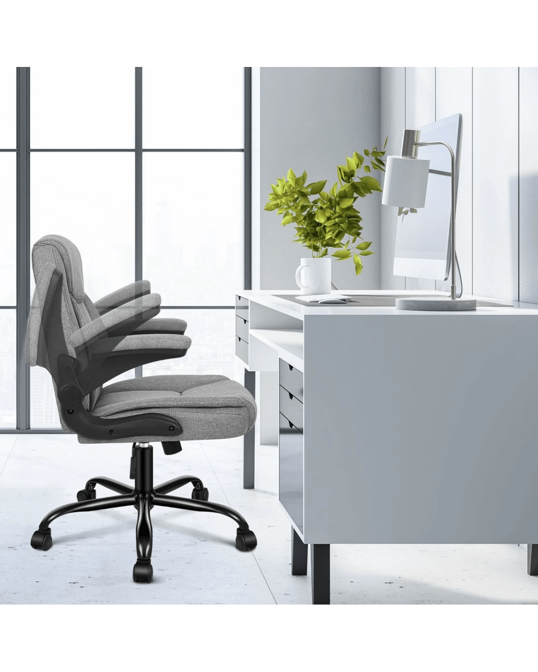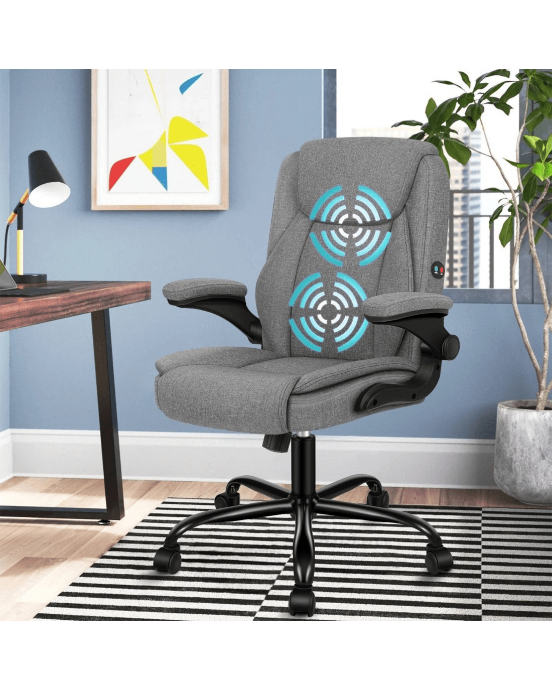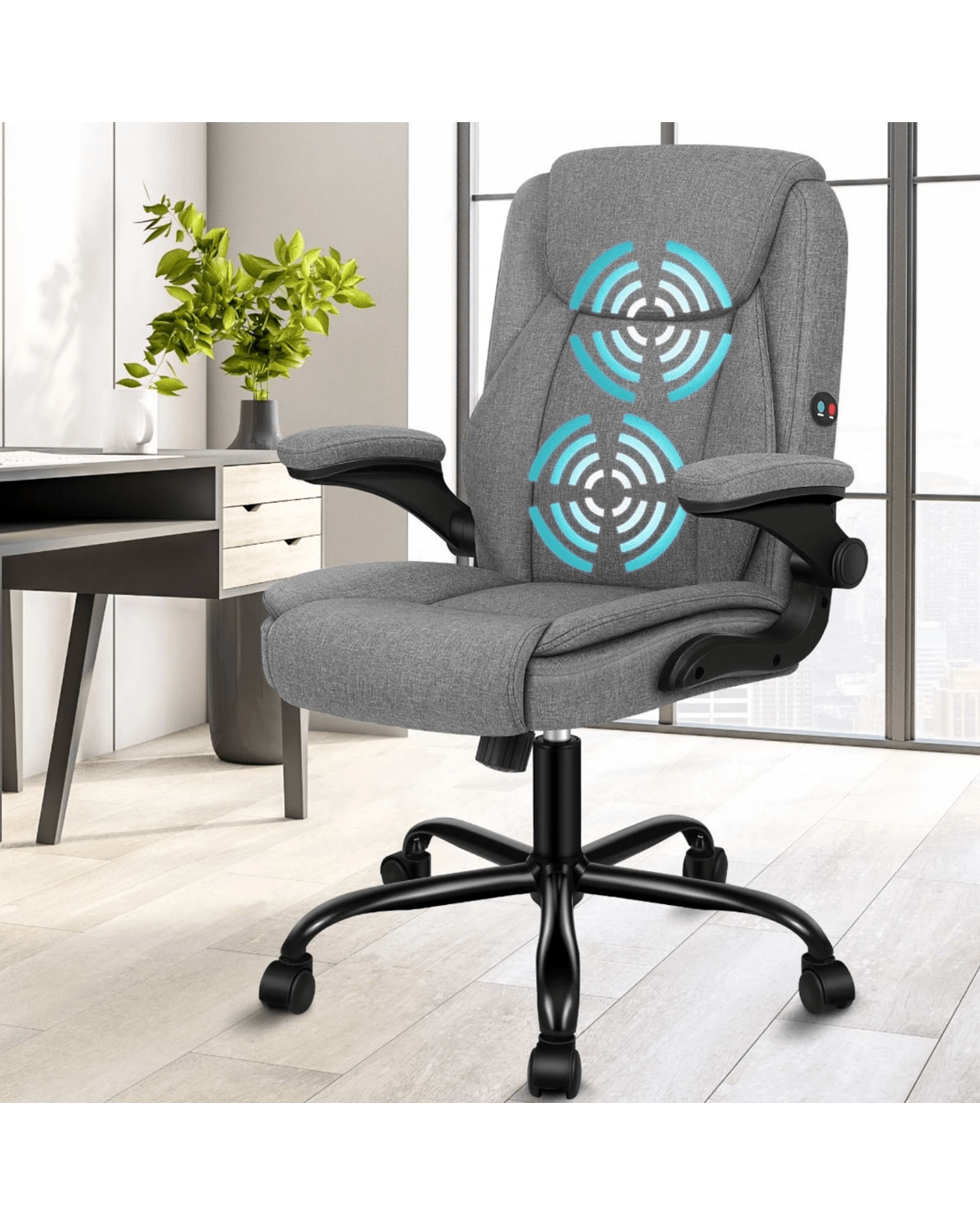 Alfordson Massage Office Chair Executive Computer Gaming Seat Linen Fabric - Grey