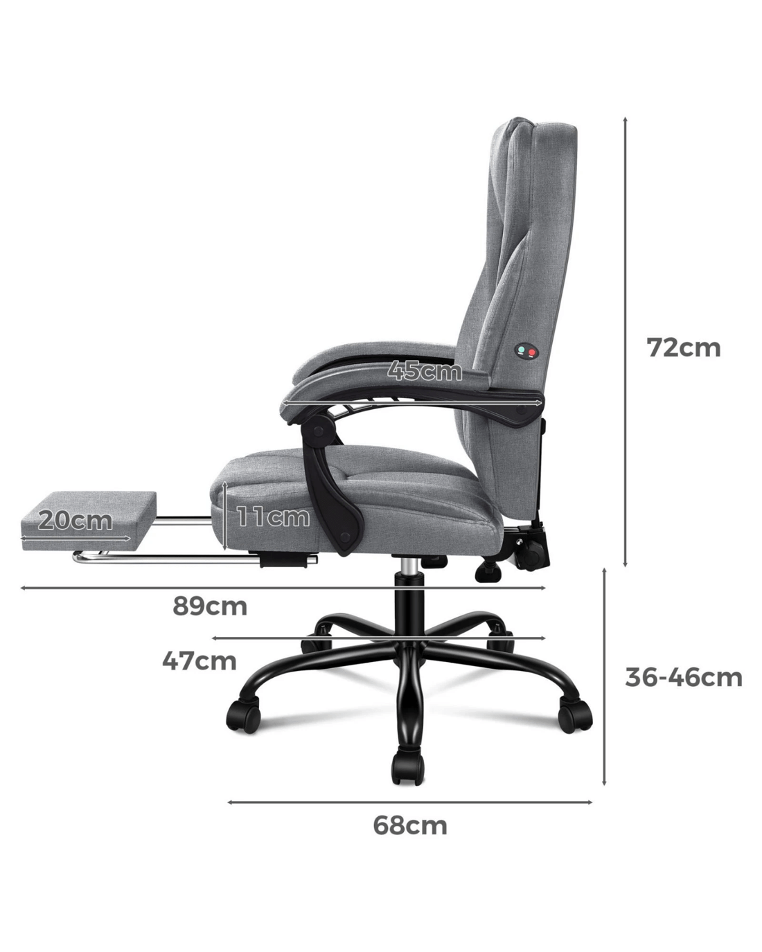 Crafted with innovation in mind, we upgraded the chair with ergonomic lumbar support and 2 massage points, allows you to work at your peak for long periods of time in optimal comfort. Built with breathable and durable linen fabric, generous foam paddings and ergonomically-friendly design, our chair provides your entire body with ample support in all the right places. The chair perfectly combines both comfort and style.
