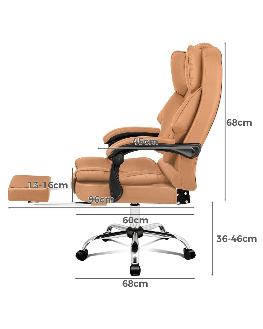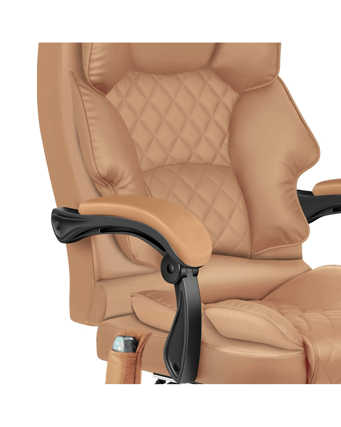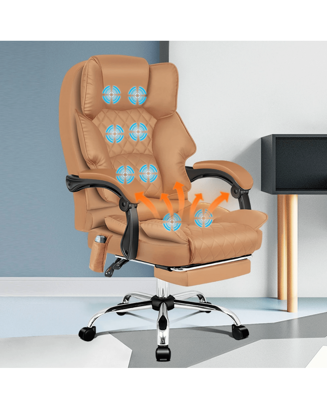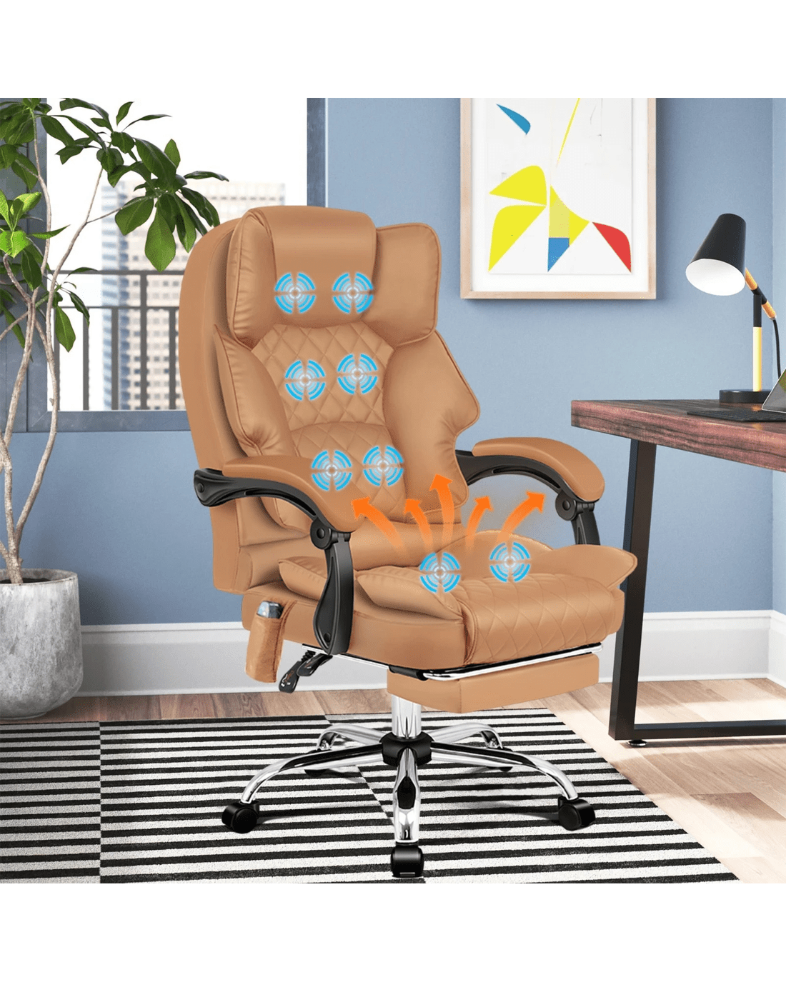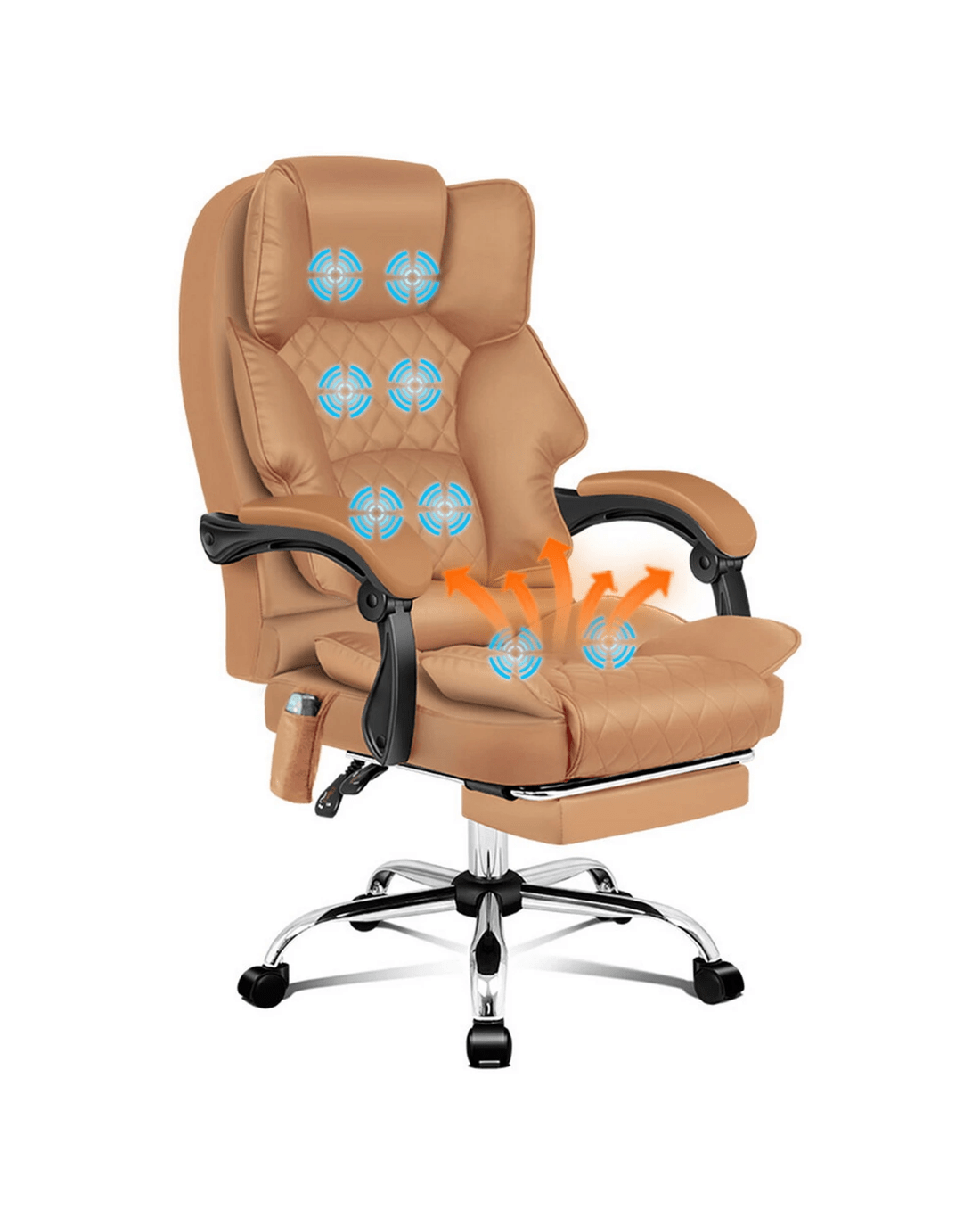 Crafted with innovation in mind, we upgraded the chair with 8 massage points and gentle seat heat function, allows you to work at your peak for long periods of time in optimal comfort. Built with premium PU leather, generous foam paddings and ergonomically-friendly design, our chair provides your entire body with ample support in all the right places. The chair perfectly combines both comfort and style.
