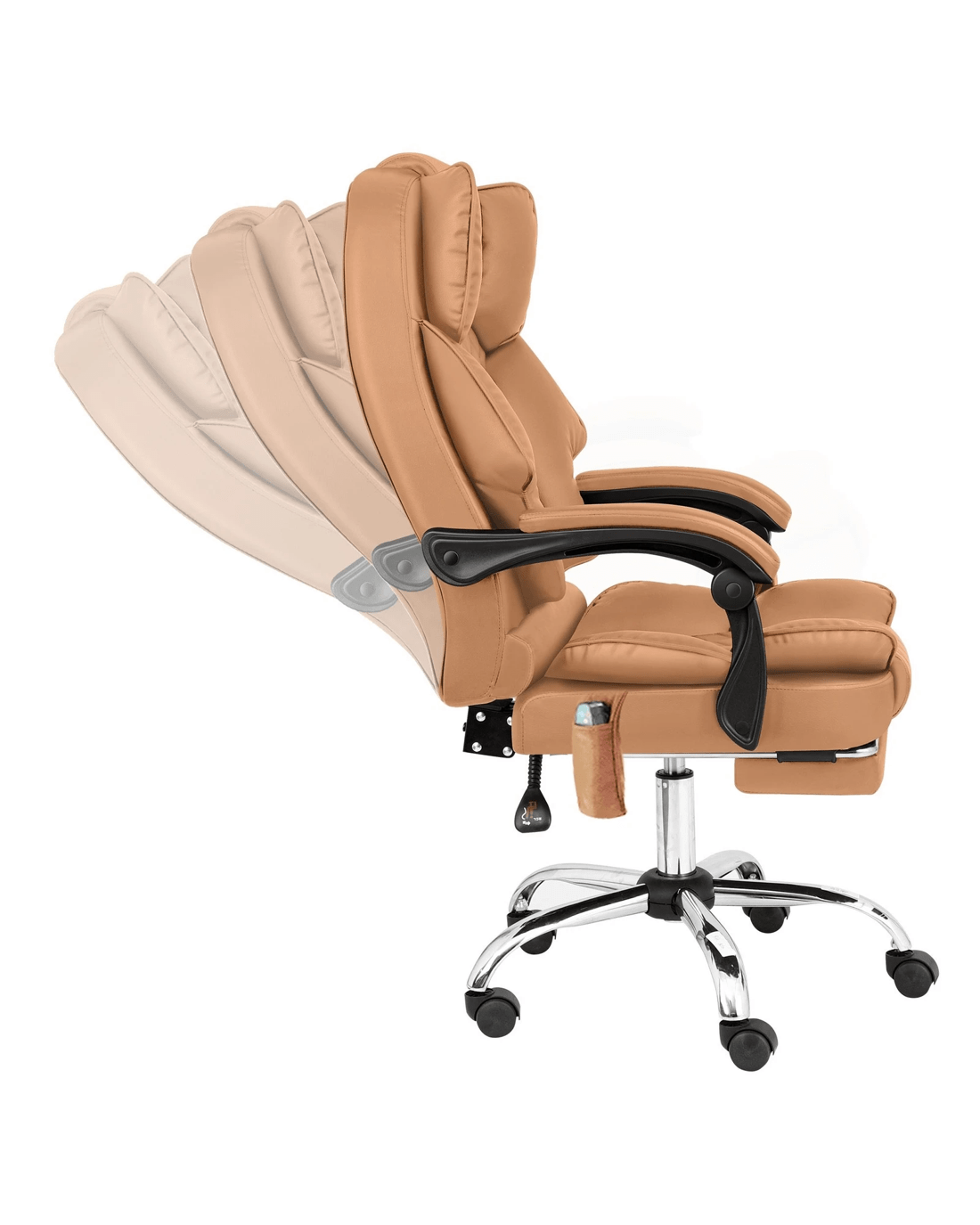 A stylish chrome base with Gas-Lift system and tilt function, delivering absolute five star luxury. And unlike some other sellers, we have no compromise on materials Use - guarantee that no cycled foams are Use - backrest is cut short or narrow to save money, and no seat foam is cut thin to save cost.