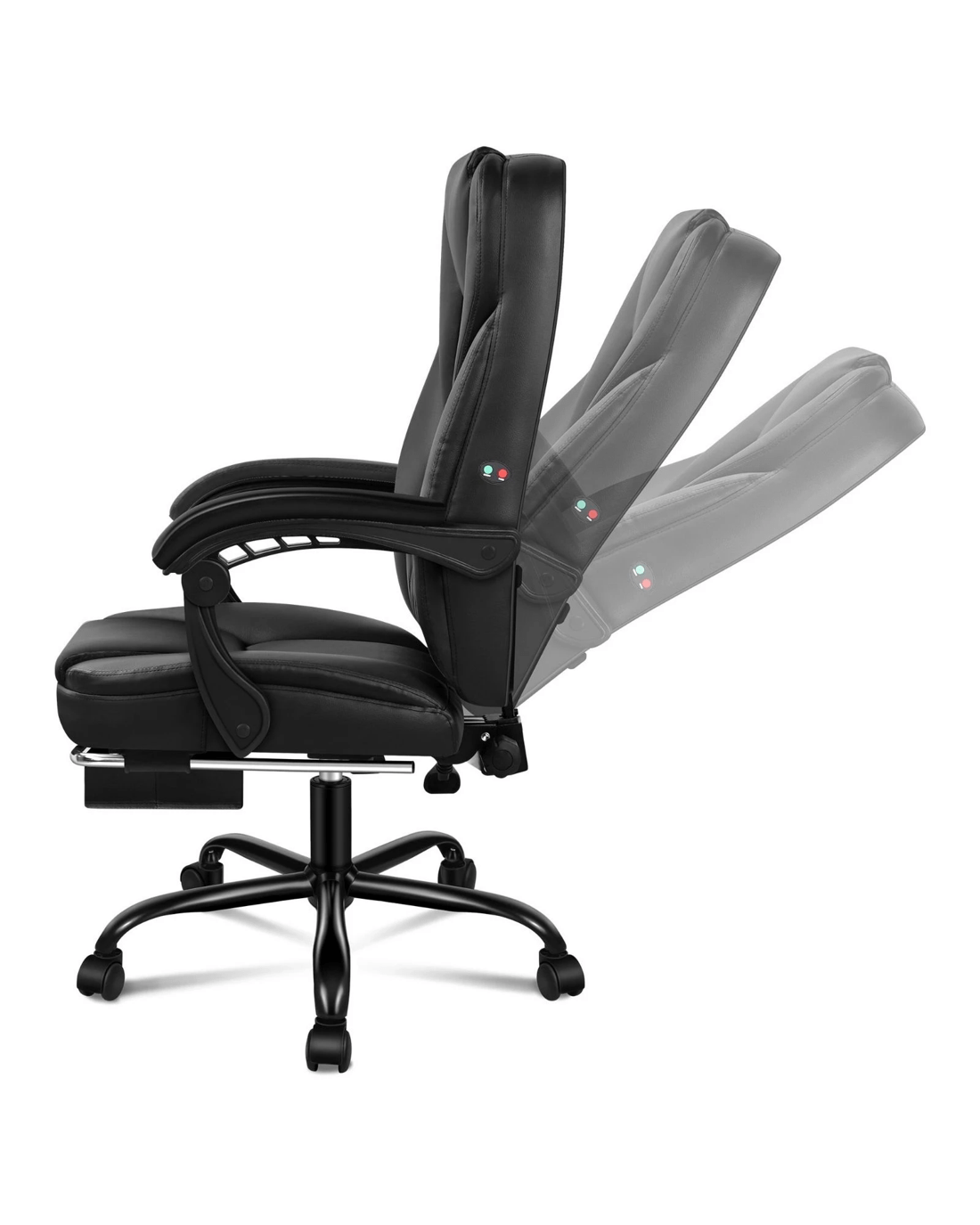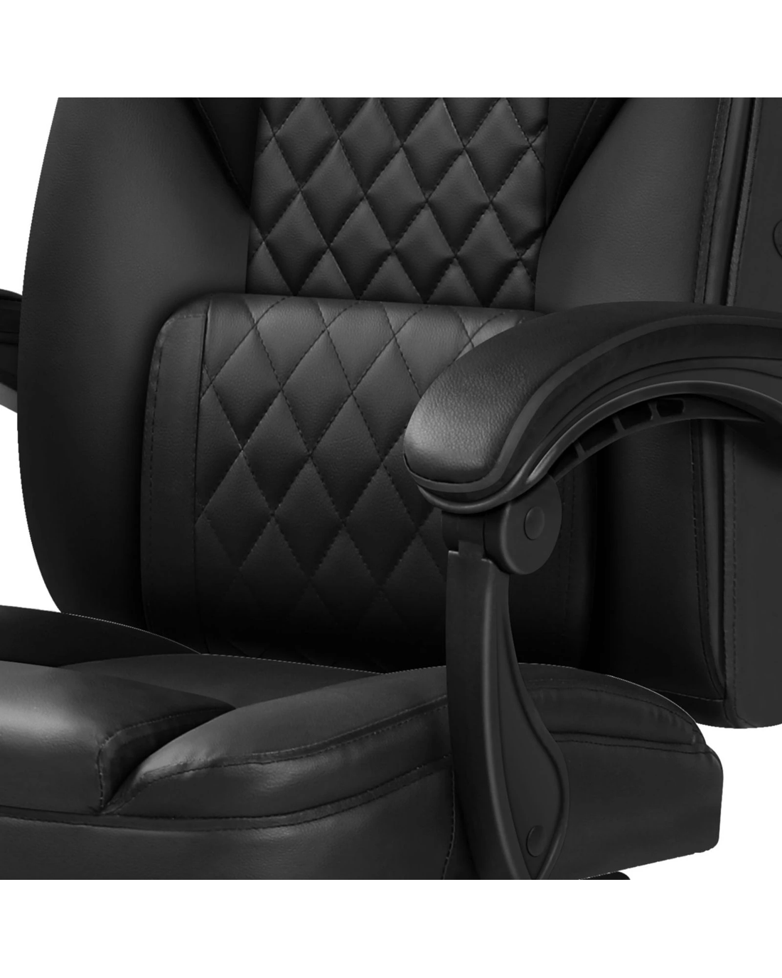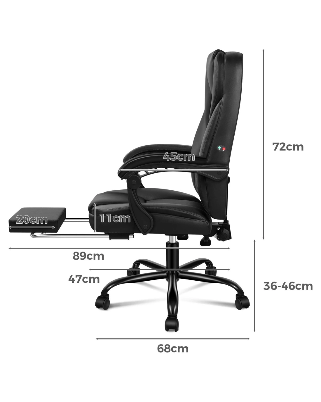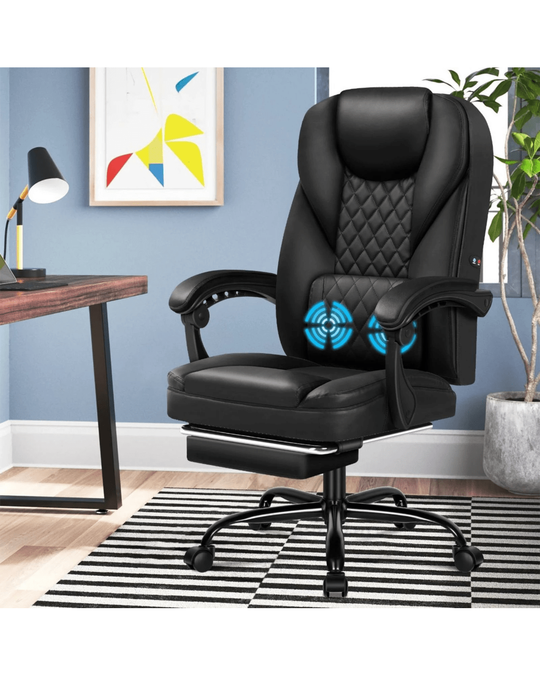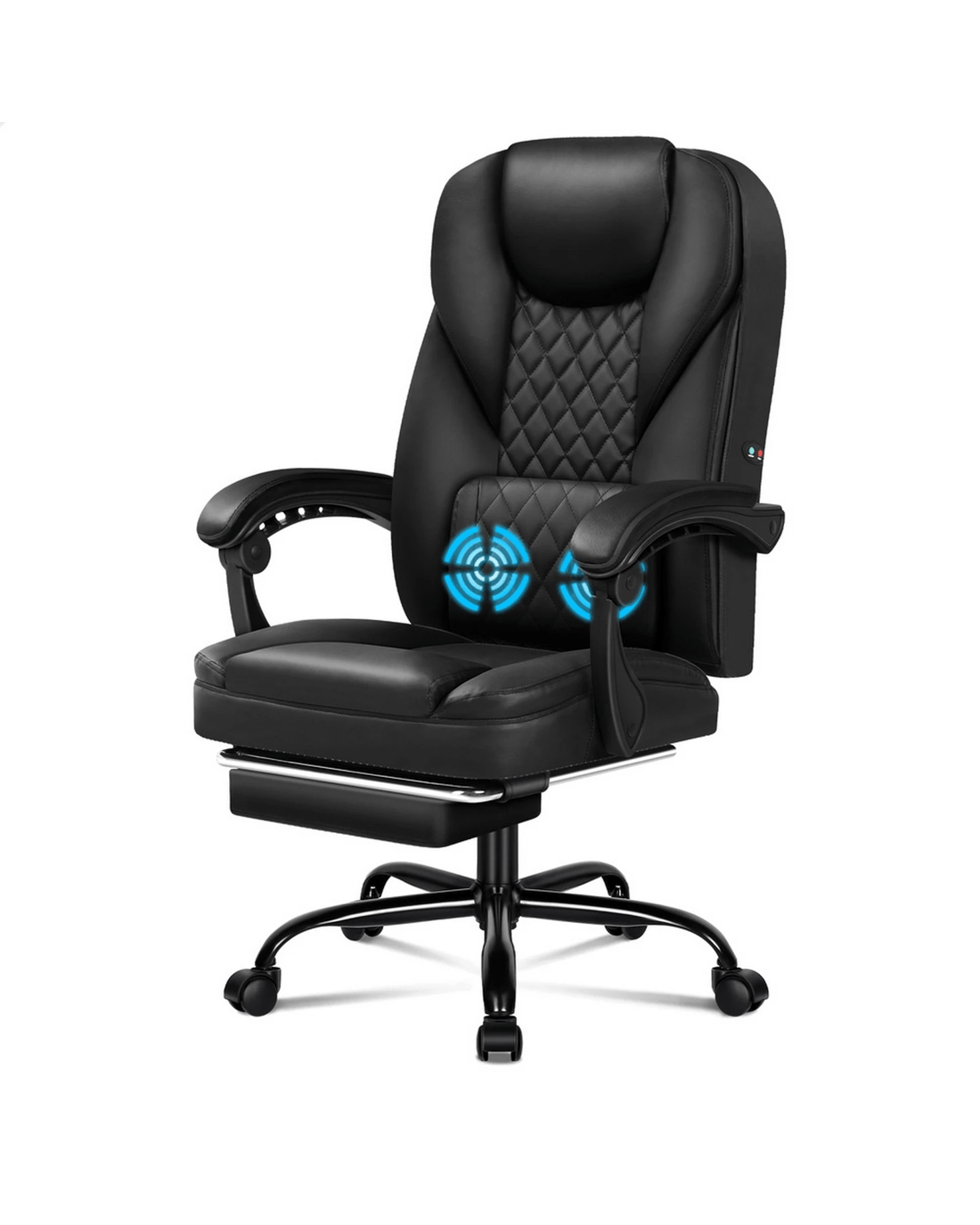 Crafted with innovation in mind, we upgraded the chair with ergonomic lumbar support and 2 massage points, allows you to work at your peak for long periods of time in optimal comfort. Built with premium PU leather, generous foam paddings and ergonomically-friendly design, our chair provides your entire body with ample support in all the right places. The chair perfectly combines both comfort and style.