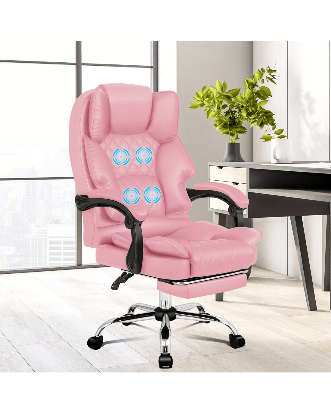 Crafted with innovation in mind, we upgraded the chair with 4 massage points, allows you to work at your peak for long periods of time in optimal comfort. Built with premium PU leather, generous foam paddings and ergonomically-friendly design, our chair provides your entire body with ample support in all the right places. The chair perfectly combines both comfort and style.