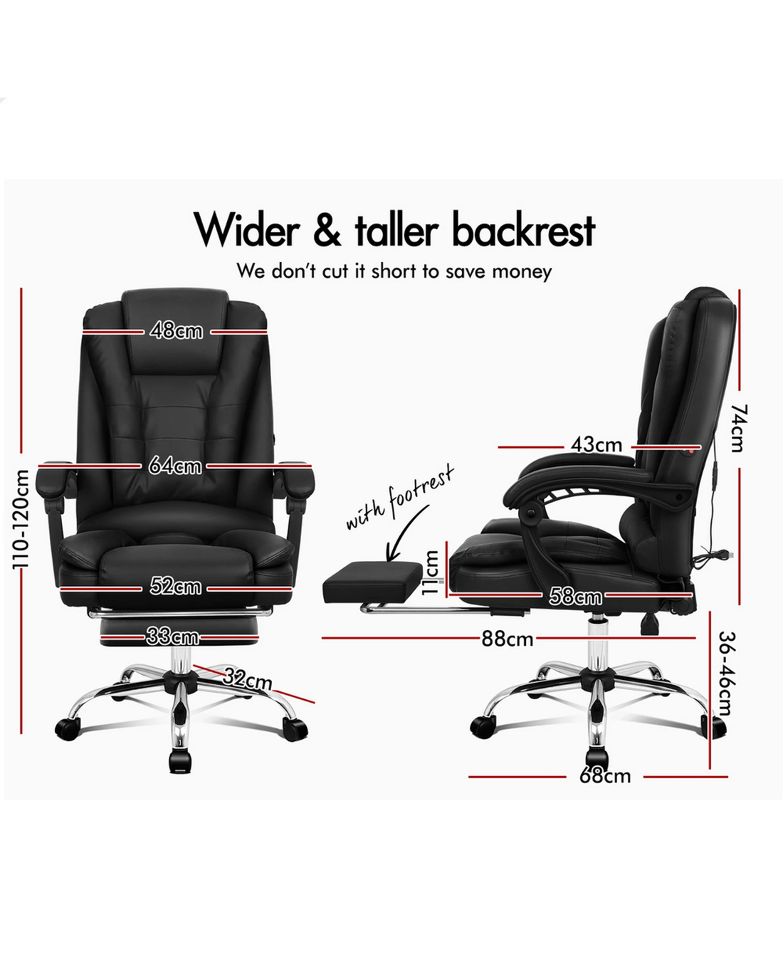 And unlike some other sellers, we have no compromise on materials Use - guarantee that no cycled foams are Use - backrest is cut short or narrow to save money, and no seat foam is cut thin to save cost.