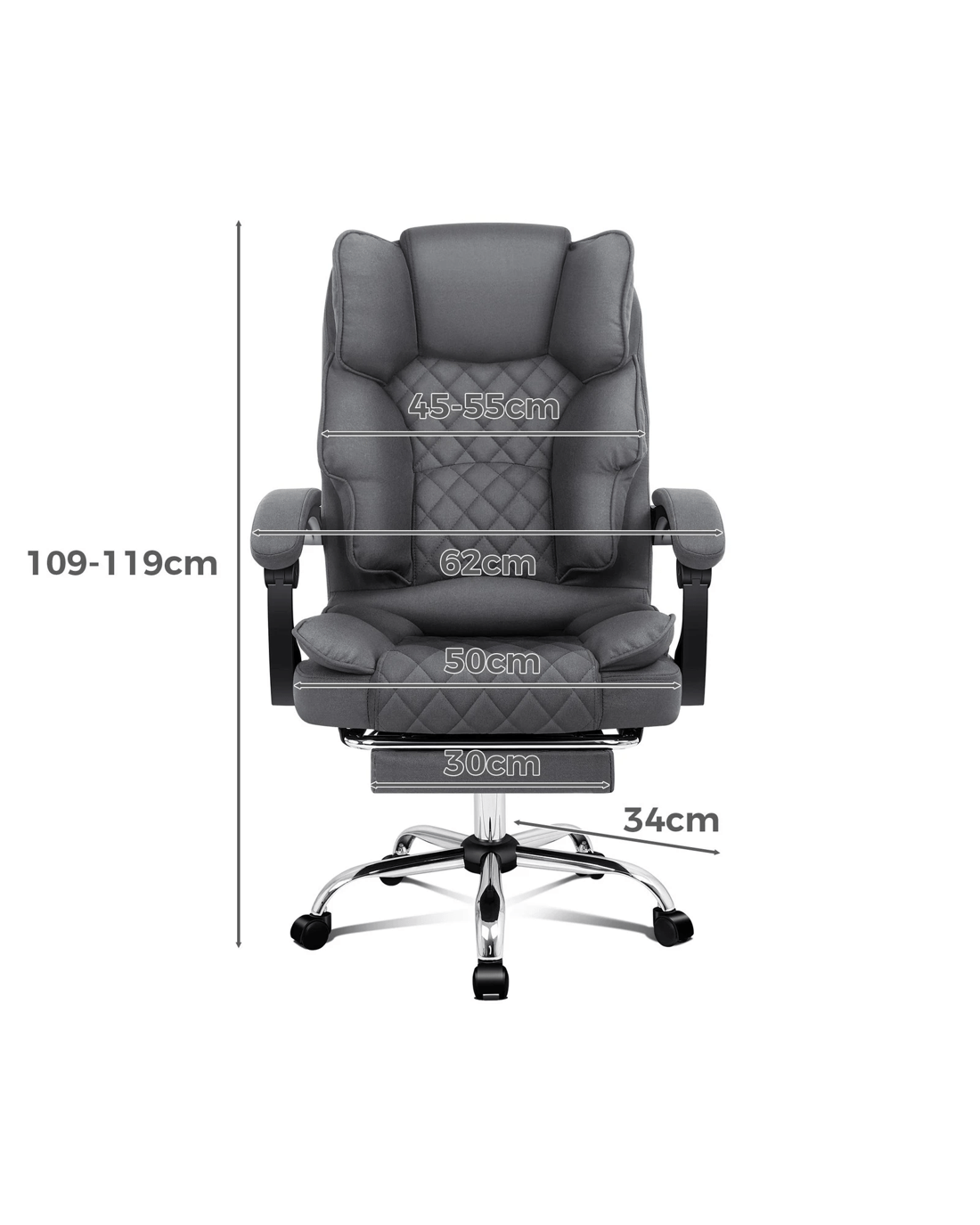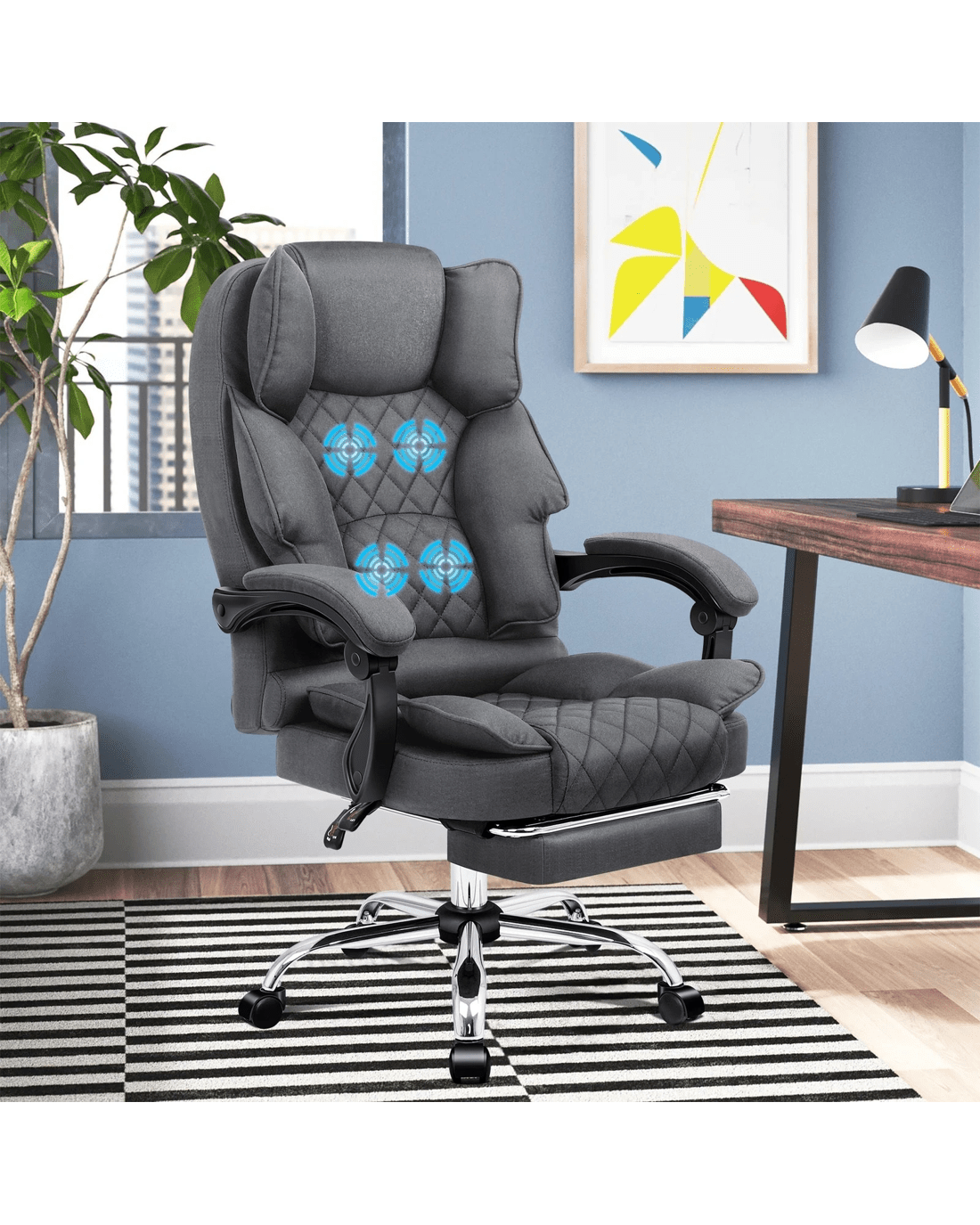 Crafted with innovation in mind, we upgraded the chair with 4 massage points, allows you to work at your peak for long periods of time in optimal comfort. Built with premium linen fabric, generous foam paddings and ergonomically-friendly design, our chair provides your entire body with ample support in all the right places. The chair perfectly combines both comfort and style.