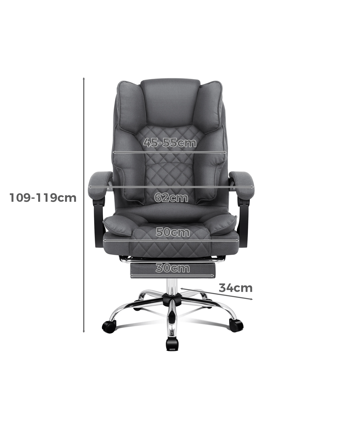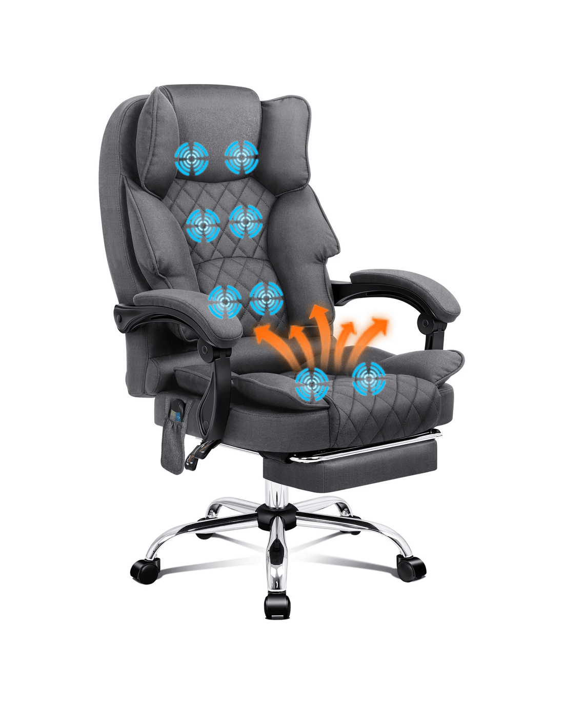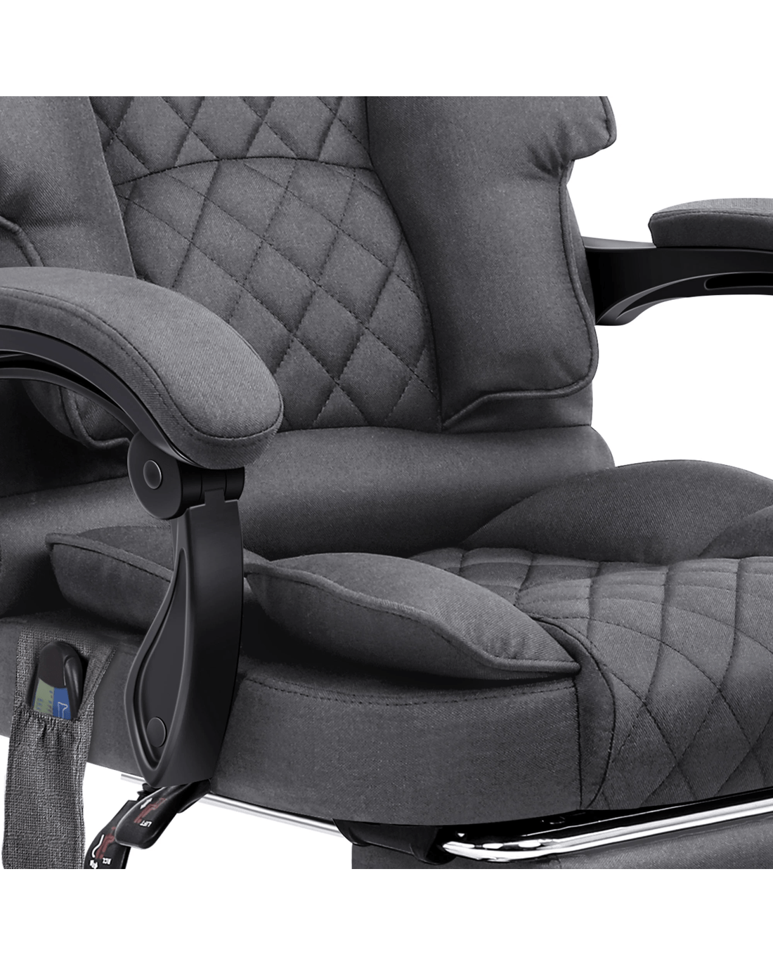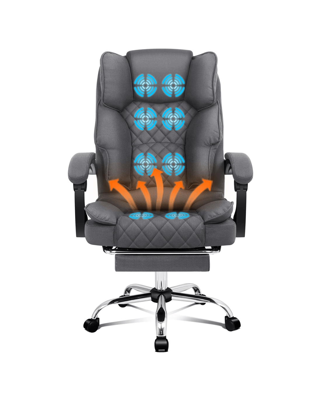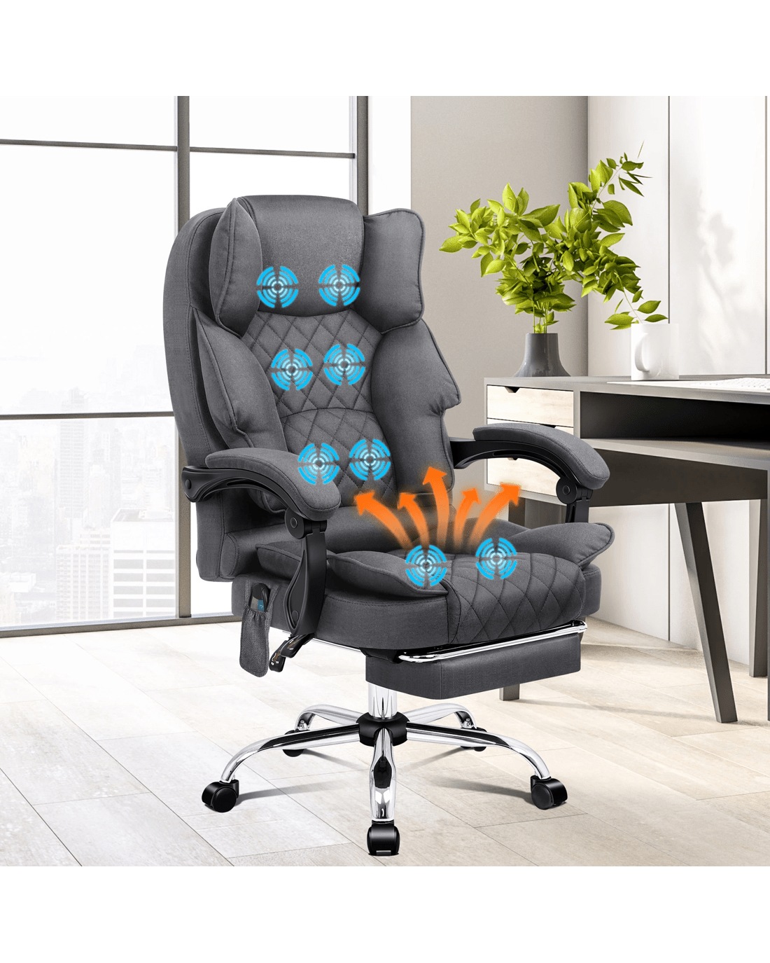 Crafted with innovation in mind, we upgraded the chair with 8 massage points and gentle seat heat function, allows you to work at your peak for long periods of time in optimal comfort. Built with premium linen fabric, generous foam paddings and ergonomically-friendly design, our chair provides your entire body with ample support in all the right places. The chair perfectly combines both comfort and style.