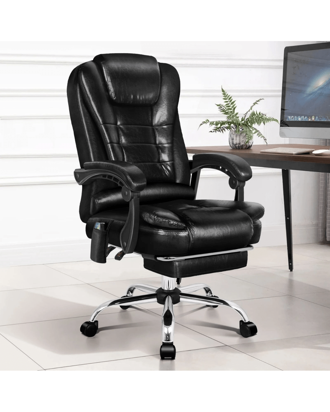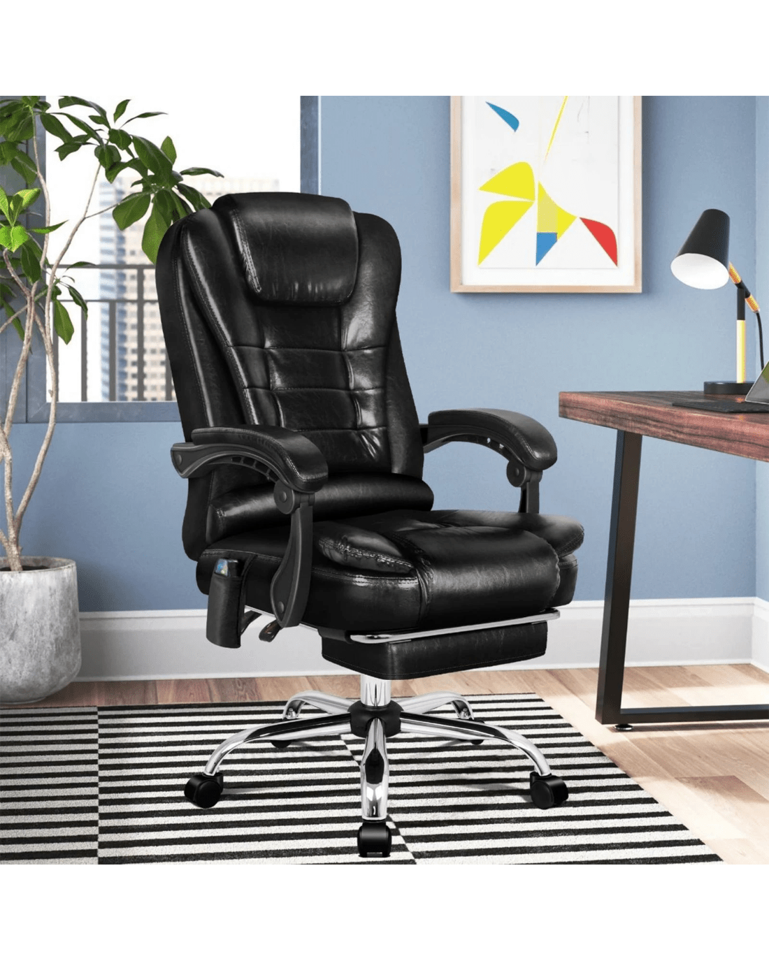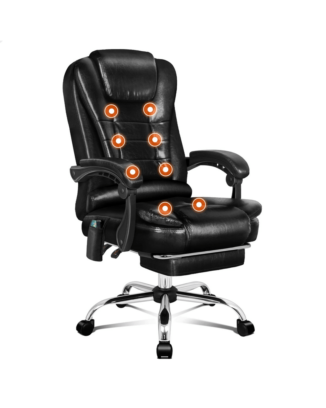 Crafted with innovation in mind, we upgraded the chair with 8 massage points and gentle seat heat function, allows you to work at your peak for long periods of time in optimal comfort. Built with premium PU leather, generous foam paddings and ergonomically-friendly design, our chair provides your entire body with ample support in all the right places. The chair perfectly combines both comfort and style.