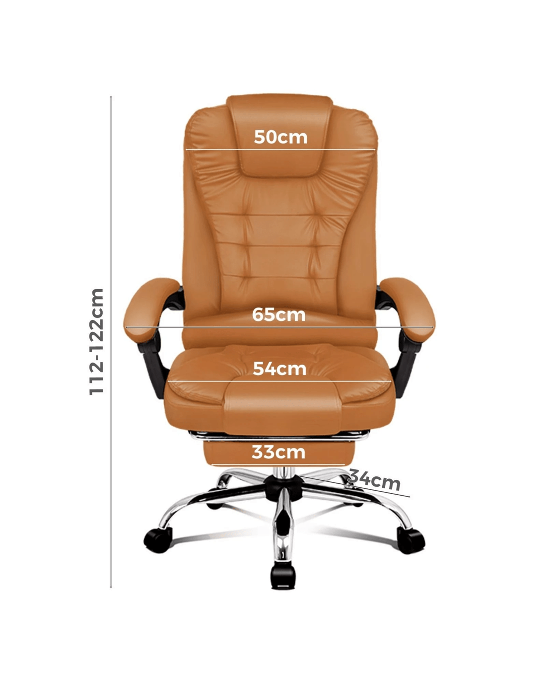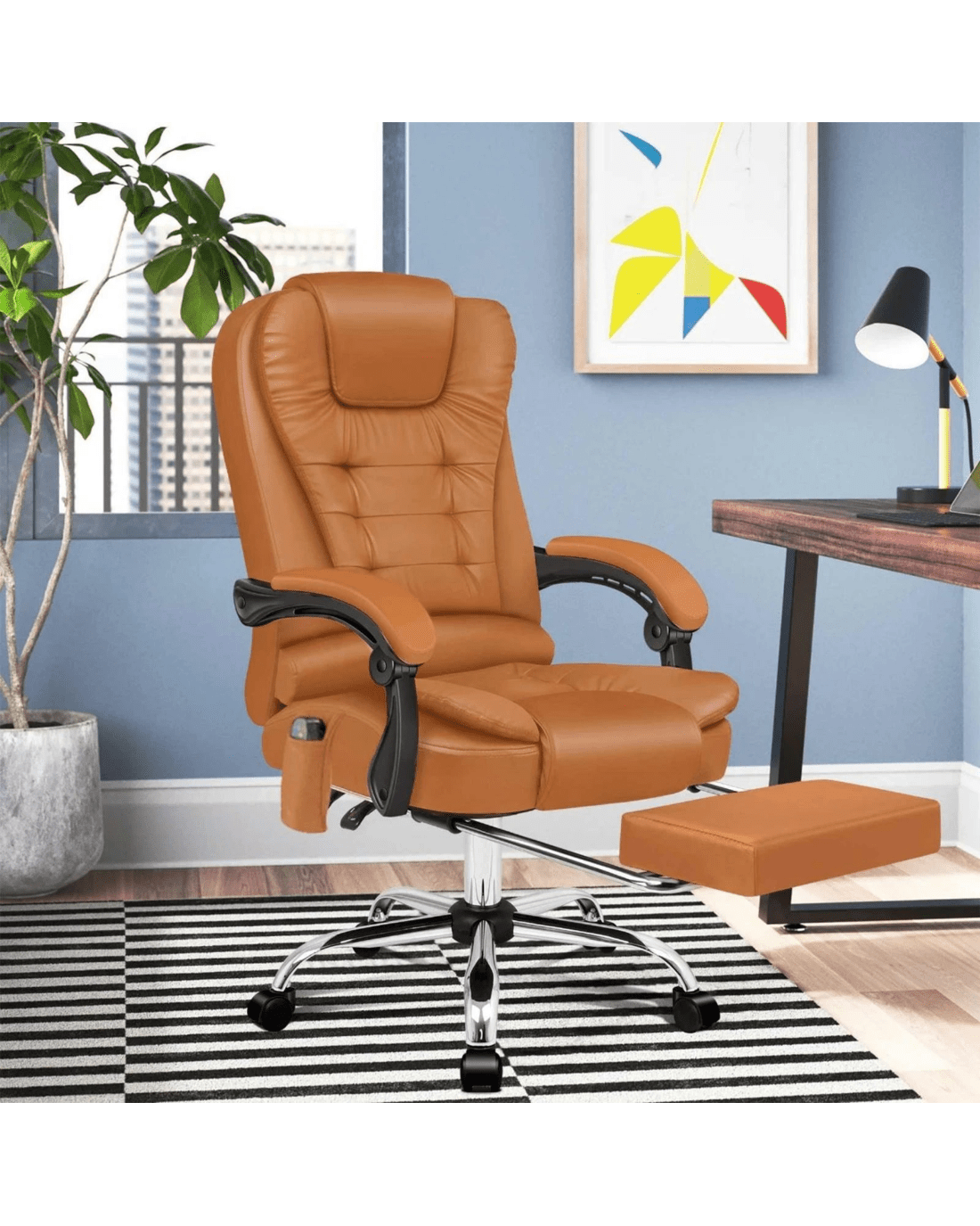 Crafted with innovation in mind, we upgraded the chair with 8 massage points and gentle seat heat function, allows you to work at your peak for long periods of time in optimal comfort. Built with premium PU leather, generous foam paddings and ergonomically-friendly design, our chair provides your entire body with ample support in all the right places. The chair perfectly combines both comfort and style.