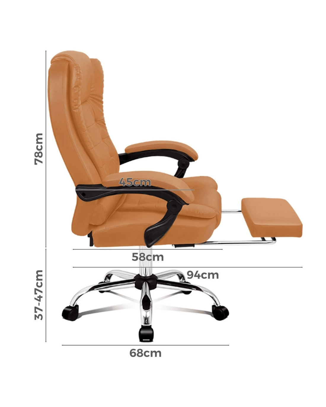 A stylish chrome base with Gas-Lift system and tilt function, delivering absolute five star luxury. And unlike some other sellers, we have no compromise on materials Use - guarantee that no cycled foams are Use - backrest is cut short or narrow to save money, and no seat foam is cut thin to save cost.