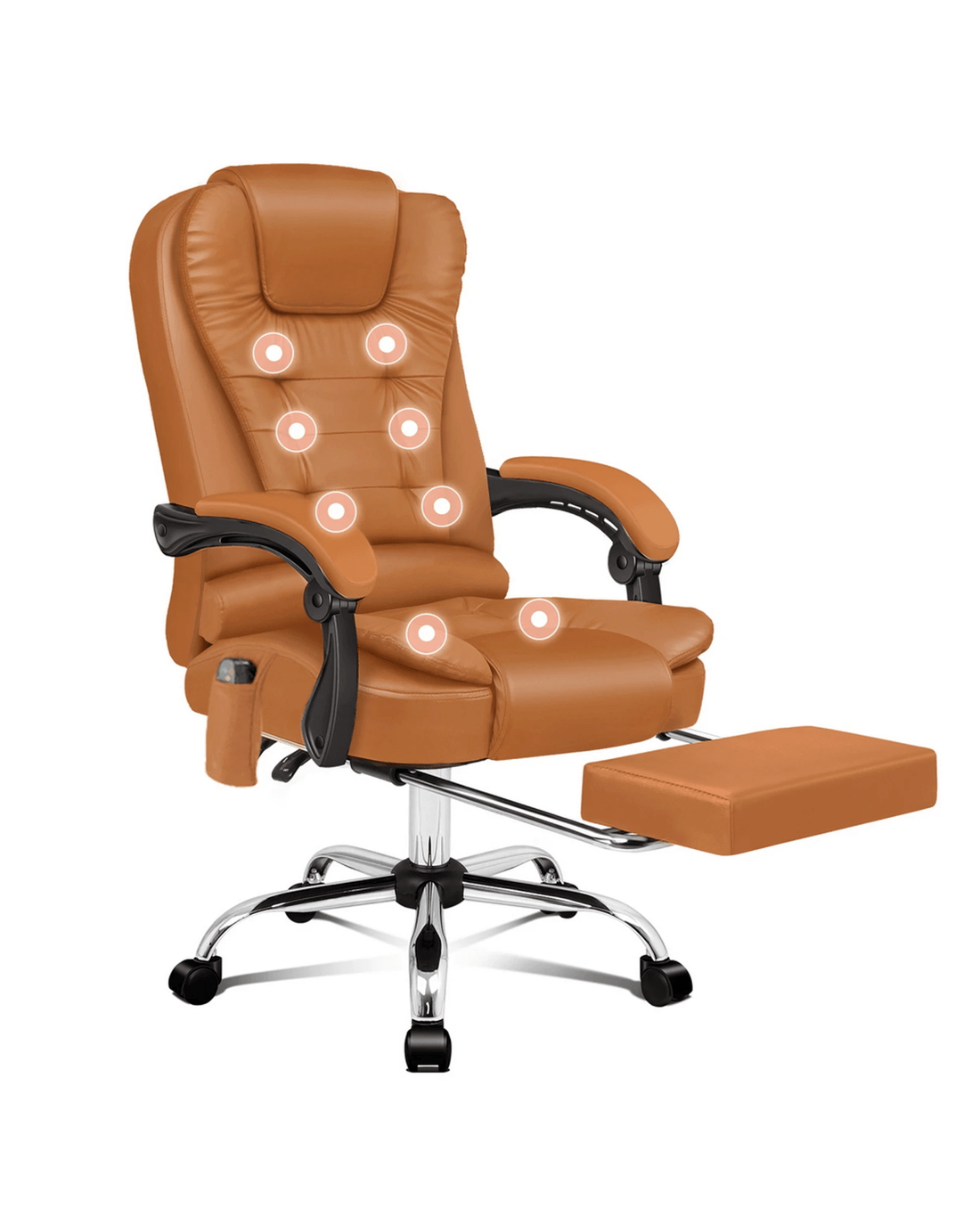 Alfordson Massage Office Chair Heated Seat Gaming Executive Racer PU Leather - Brown