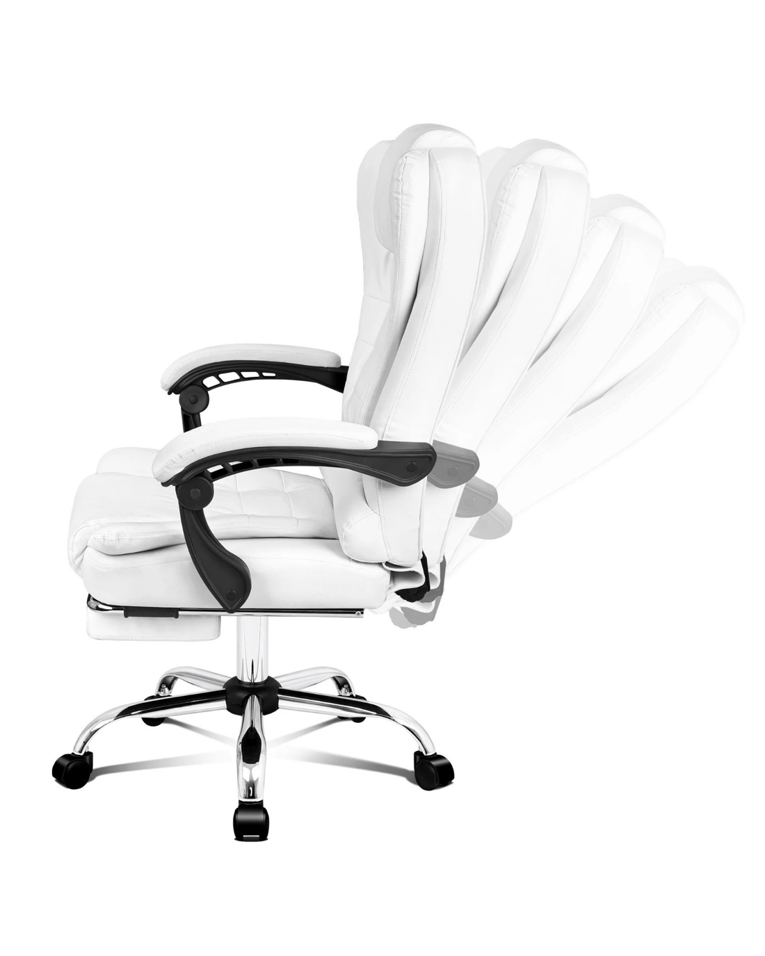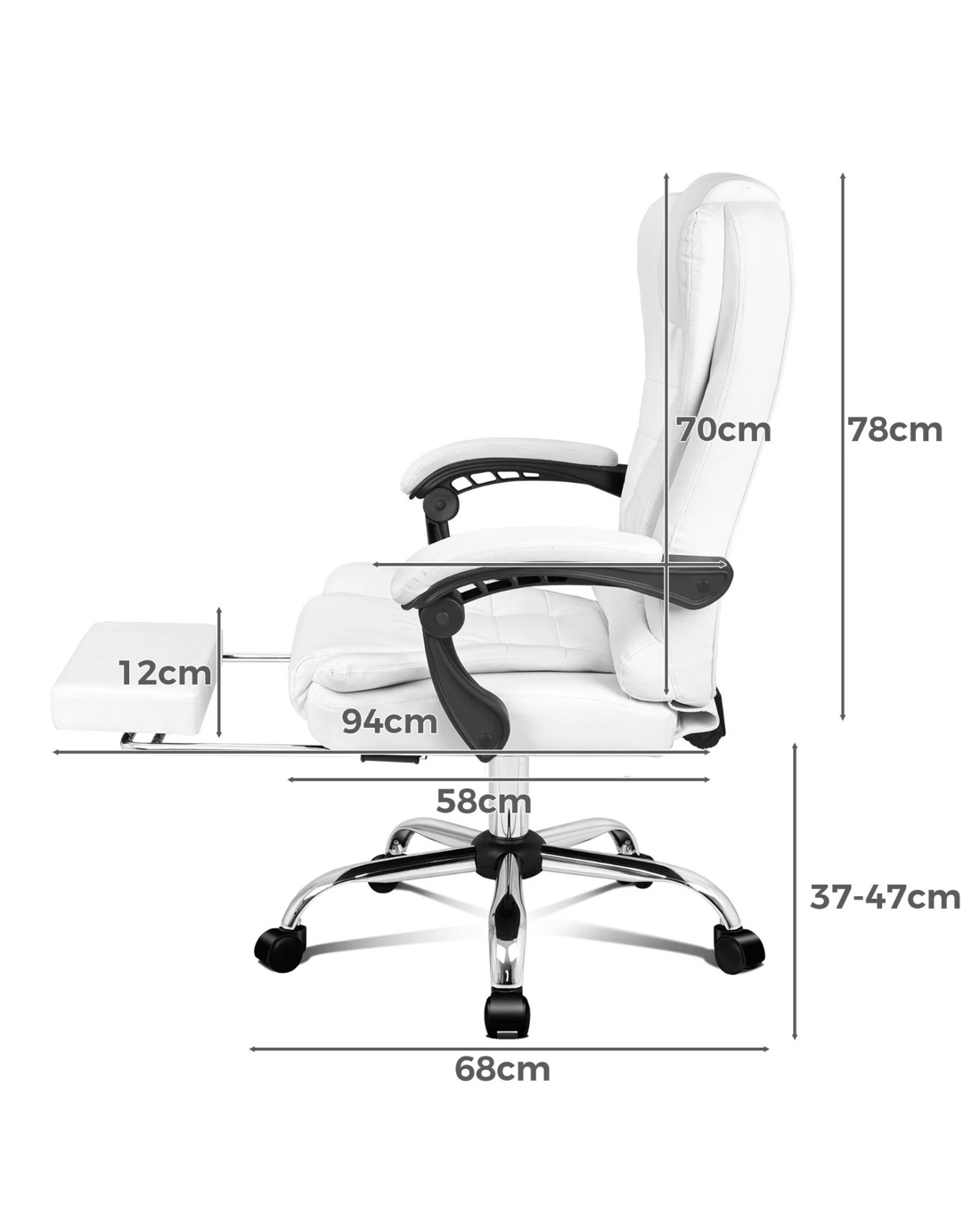 A stylish chrome base with Gas-Lift system and tilt function, delivering absolute five star luxury. And unlike some other sellers, we have no compromise on materials Use - guarantee that no cycled foams are Use - backrest is cut short or narrow to save money, and no seat foam is cut thin to save cost.