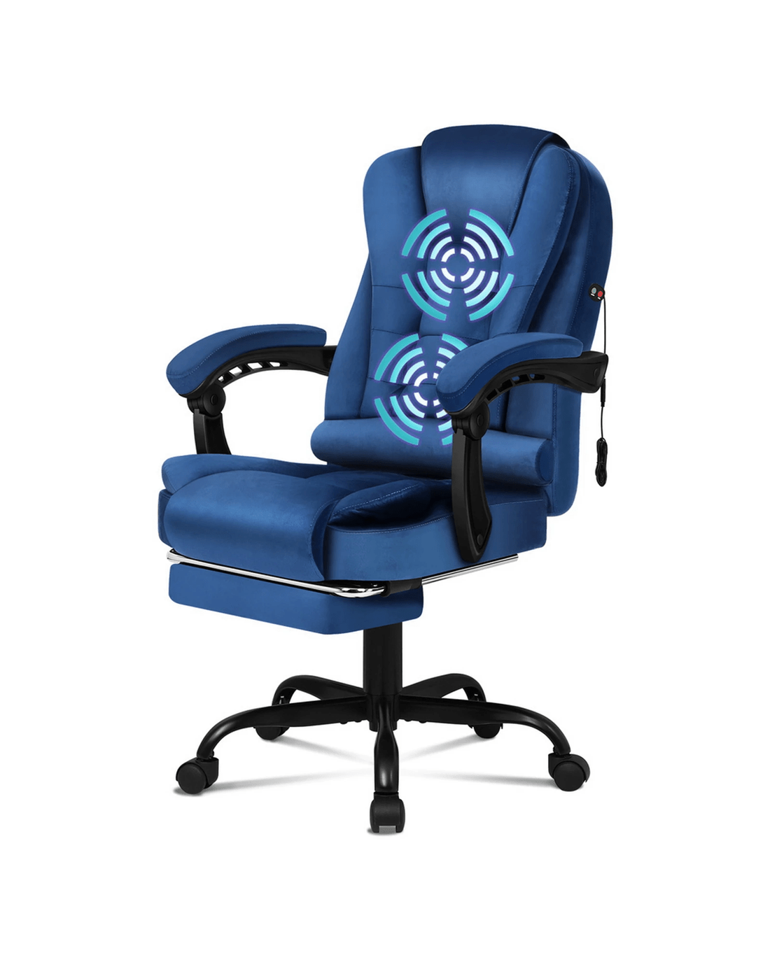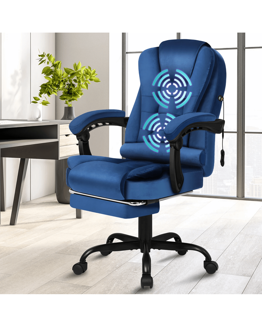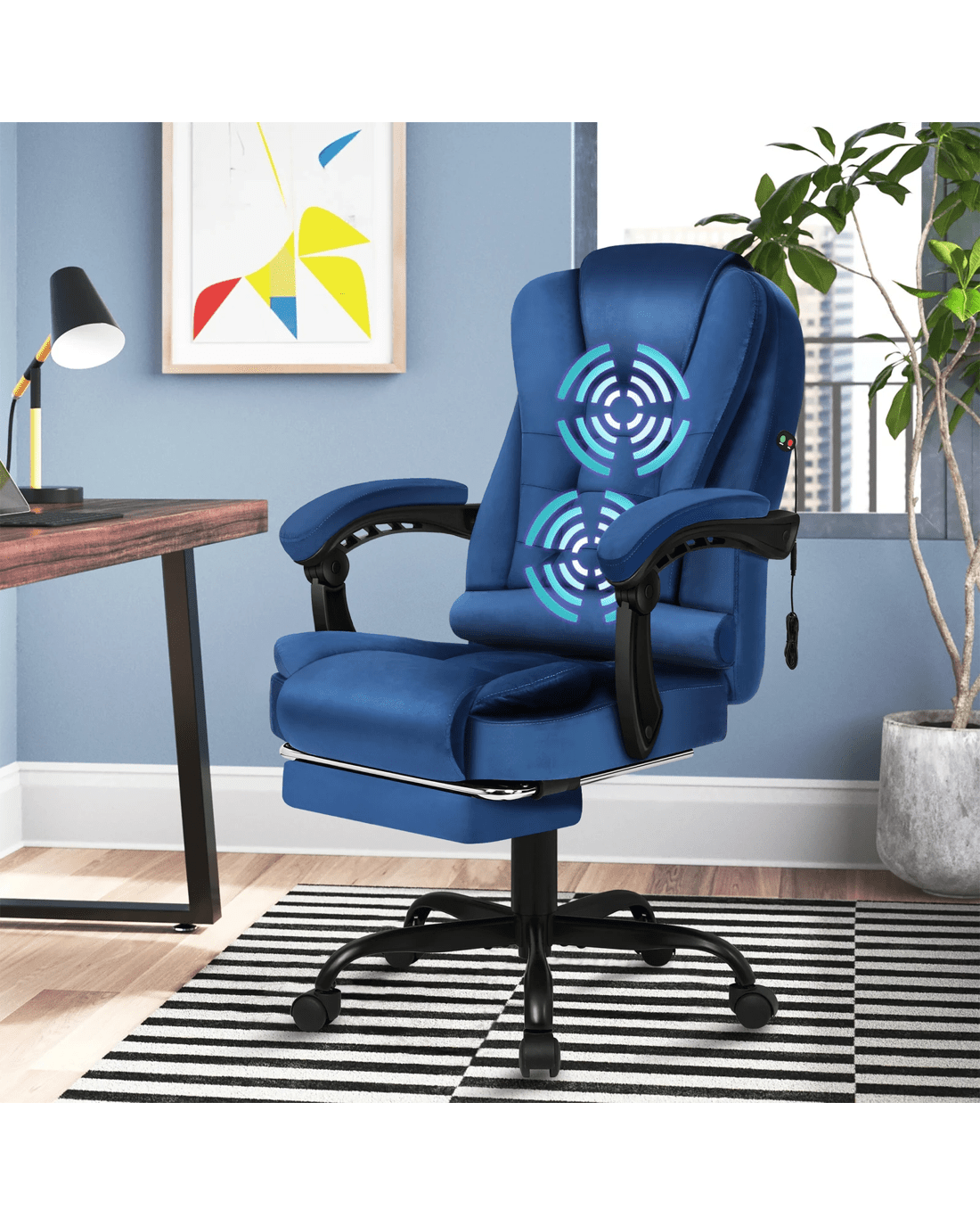 Alfordson Massage Office Chair Velvet Footrest Executive Gaming Racing Seat - Blue