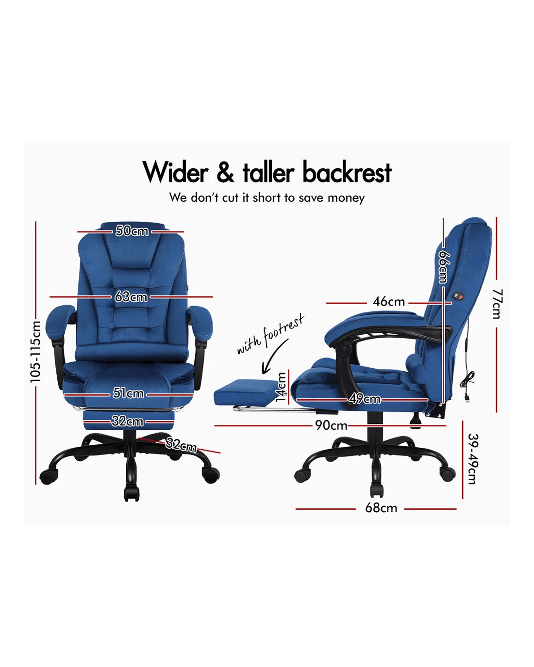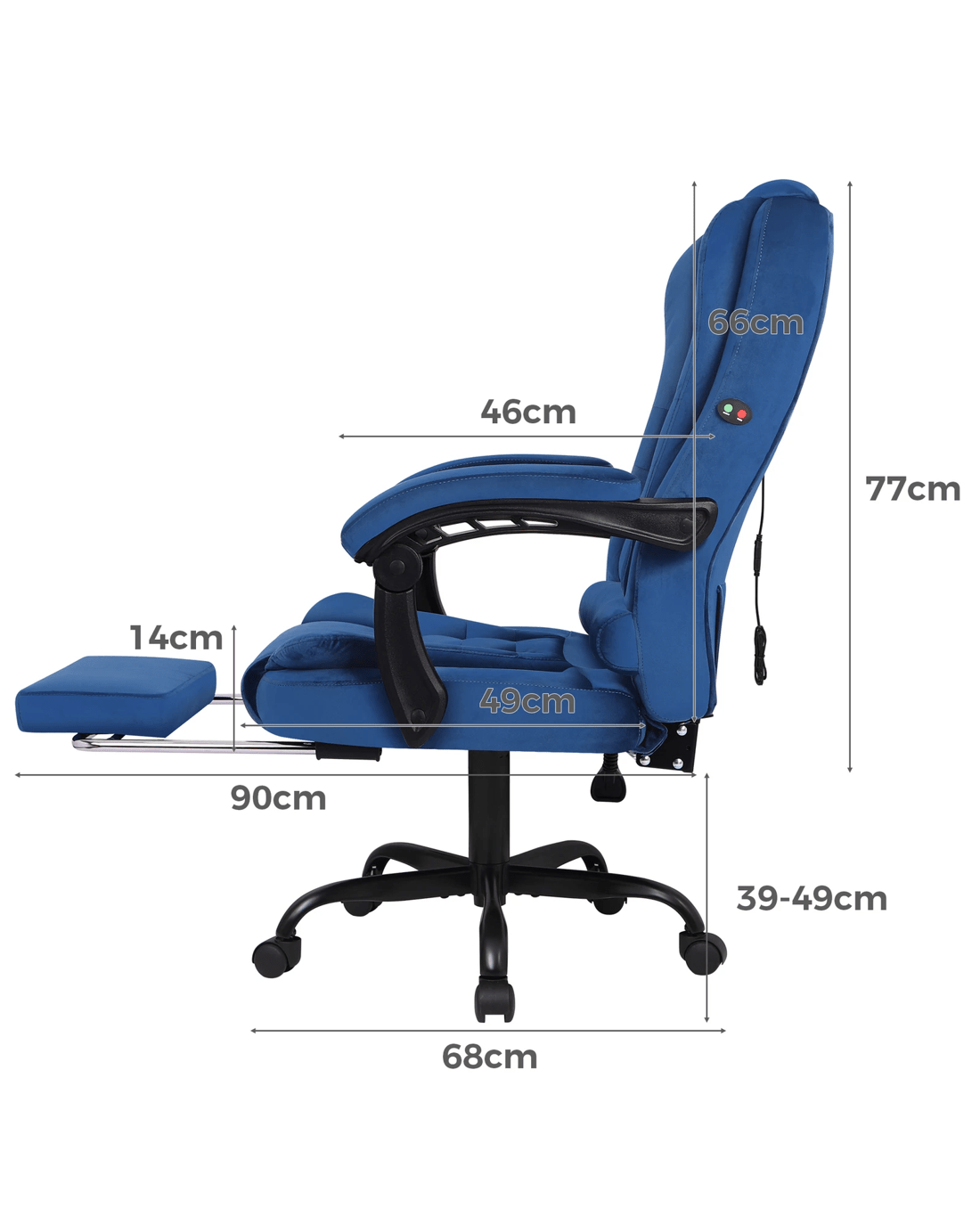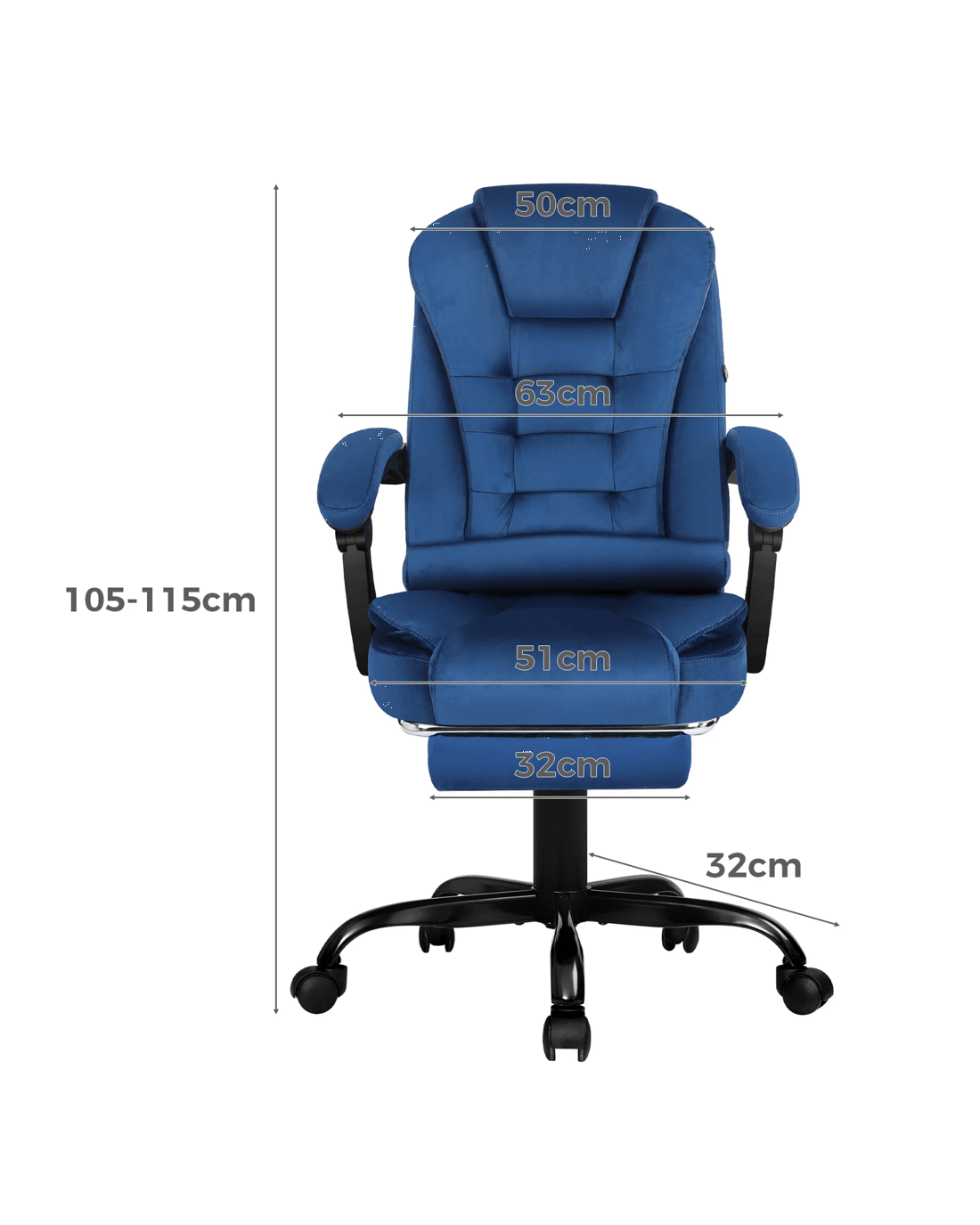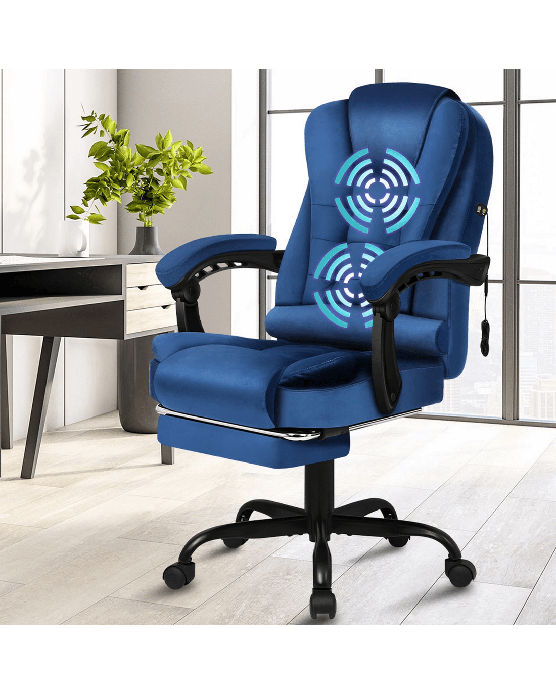 Alfordson Massage Office Chair Velvet Footrest Executive Gaming Racing Seat - Blue