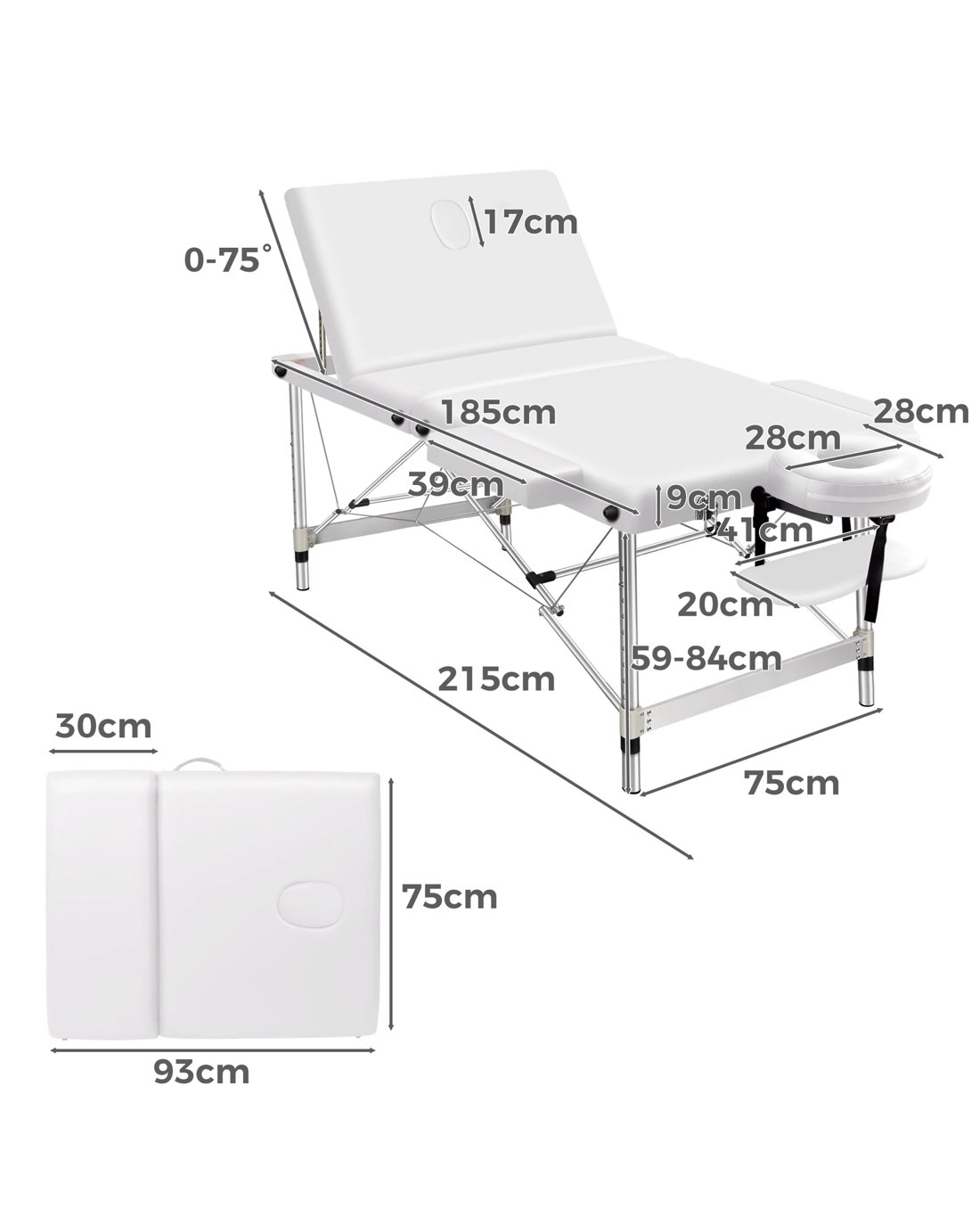 Sold by Aussie Union GroupAlfordson Massage Table 3 Fold 75cm Foldable Portable Aluminium Lift Up Bed Desk - White