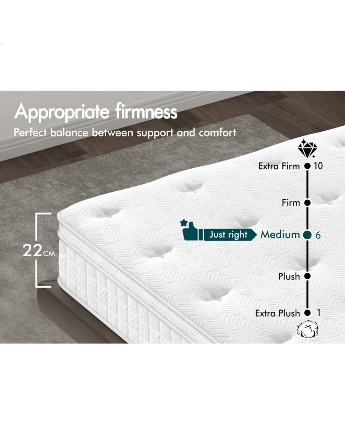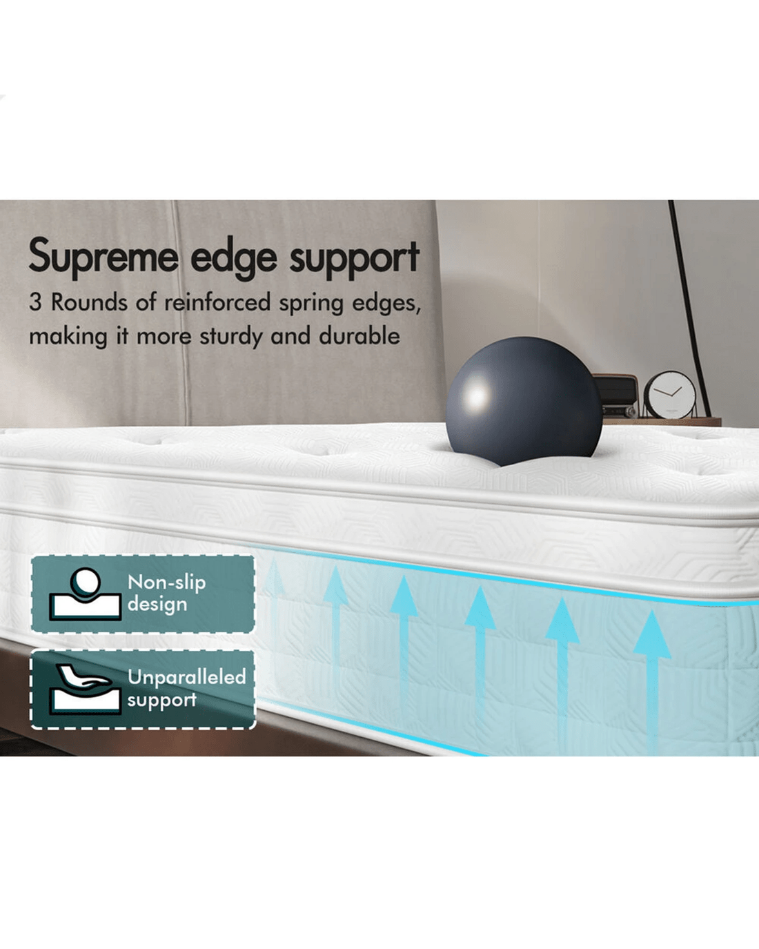 * Supreme edge support - sturdy and durable 3 rounds of reinforced spring edges