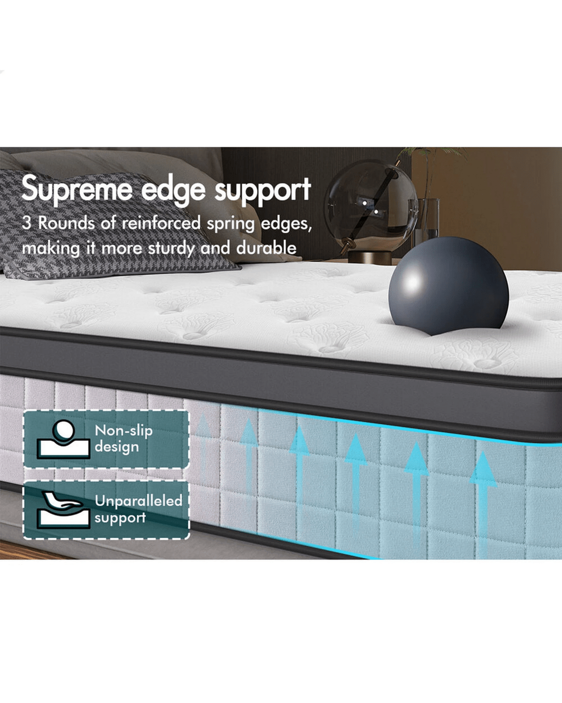 * Supreme edge support - sturdy and durable 3 rounds of reinforced spring edges