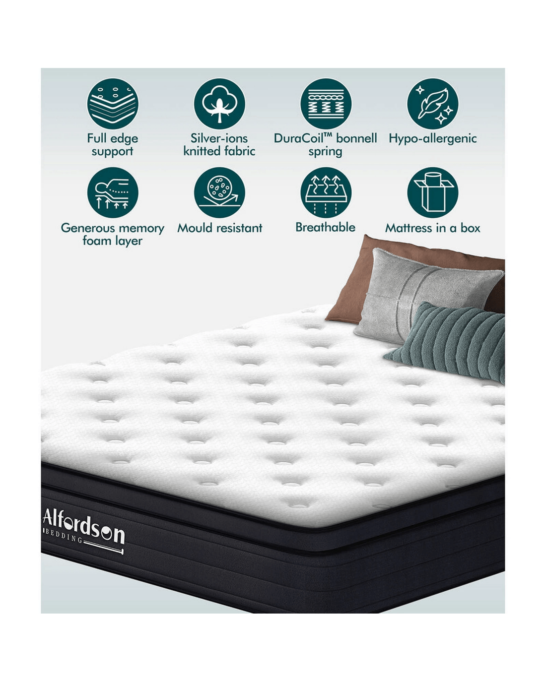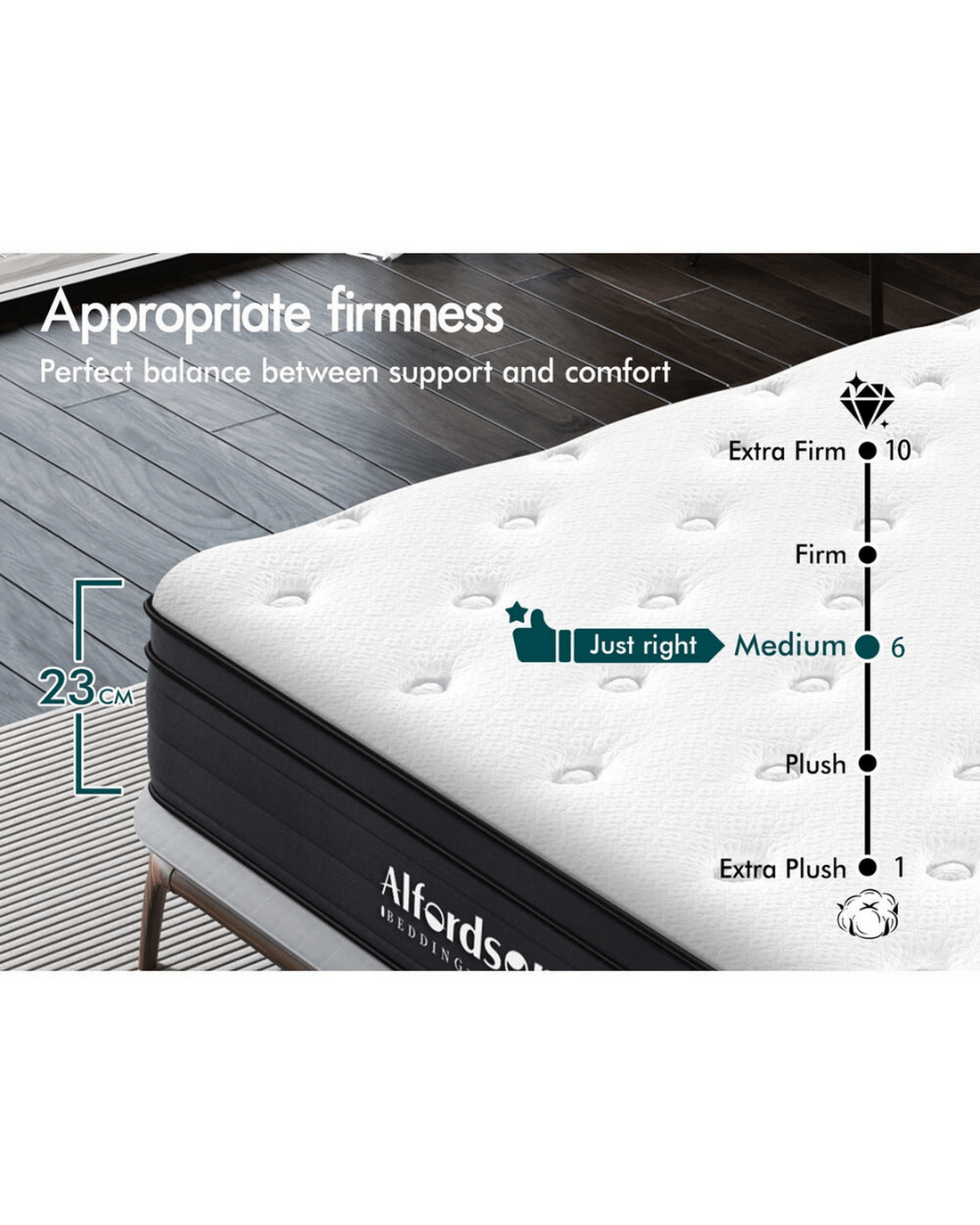 Drift away in peace, embrace cozy sleep. Alfordson Mattress, crafted with top-notch materials and exquisite craftsmanship, offers you a sleep experience as soft as a cloud and perfectly conforming to your body's curves. It allows you to unwind completely, free from all burdens and stresses, and effortlessly slip into a sweet dreamland. Here to present you with our Alfordson luxury mattress Gabriella Collection.