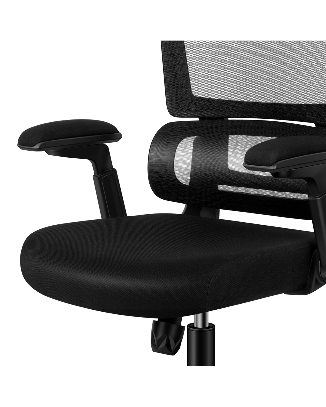 It features horizontal adjustable and retractable armrests that fit under your desk as you wish. Upholstery crafted from premium mesh fabric and generous foam paddings ensures optimal durability and easy cleaning.