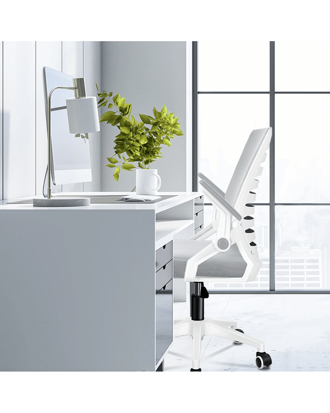 * Retractable armrests to fit under your desk