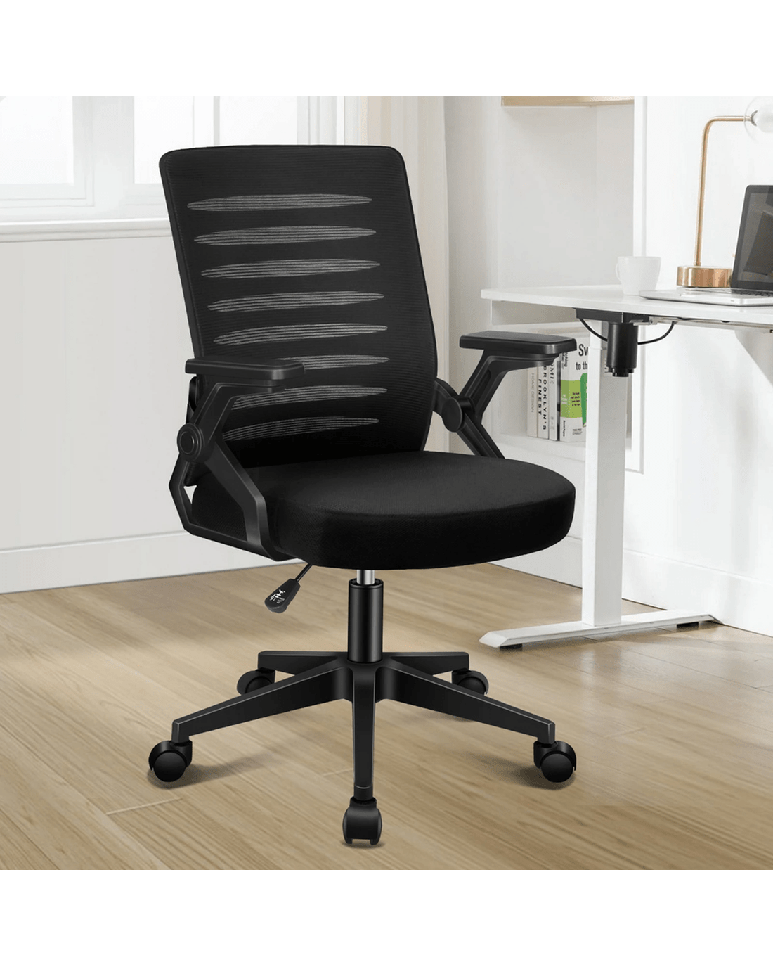This computer chair features an ergonomic S-curve with a non-headrest design to set your shoulder free, medium back for easy movement. The advanced mesh upholstery Use - the back provides ultimate support, also eliminating the risk of sagging. Additionally, the desk chair comes with horizontal adjustable and retractable armrests that fit under your desk as you wish.
