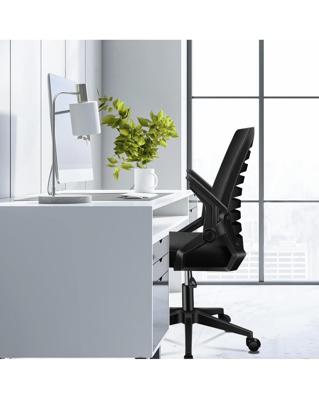 * Retractable armrests to fit under your desk