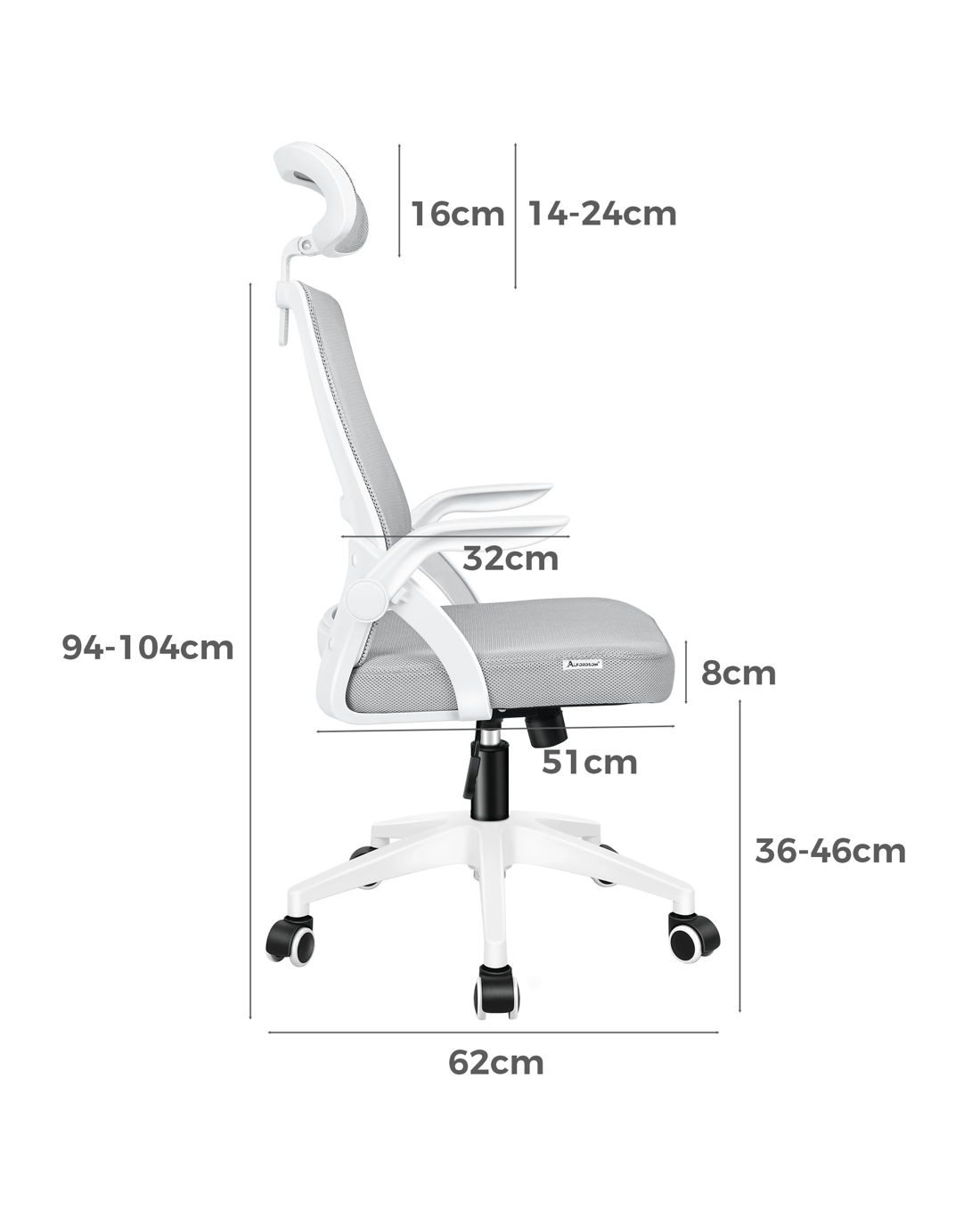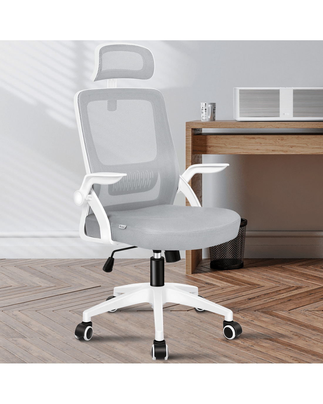 Alfordson Mesh Office Chair Executive Seat Tilt Fabric Gaming Racing Computer - White Grey