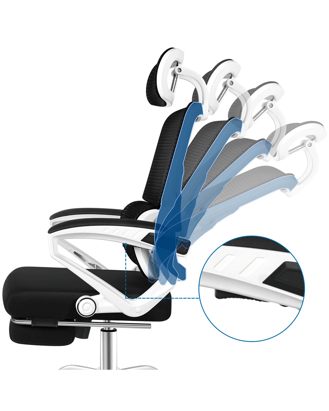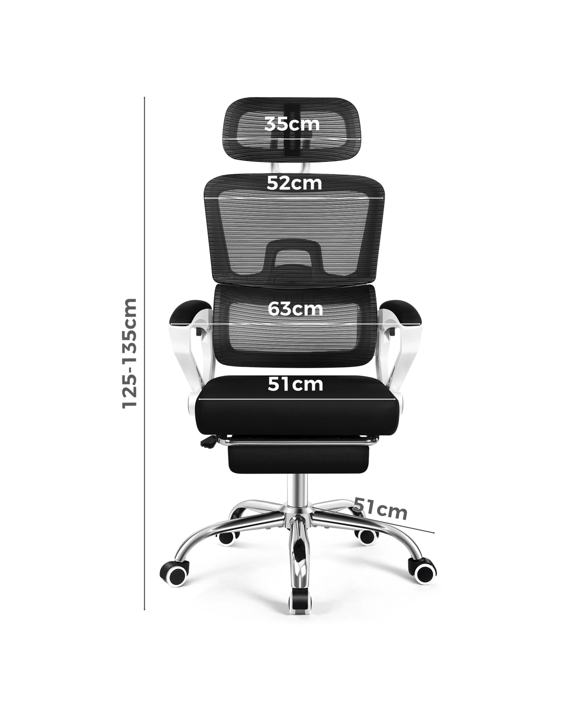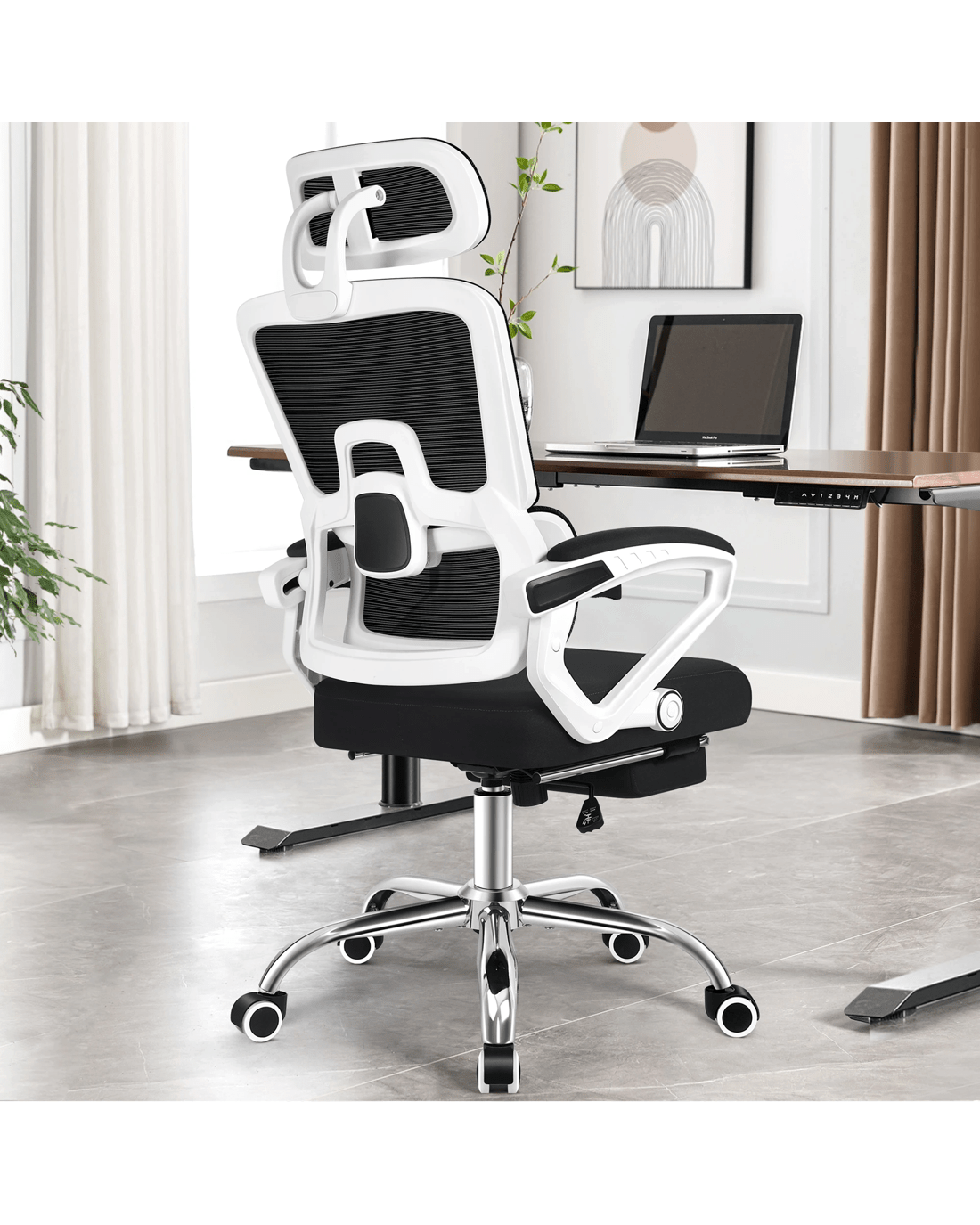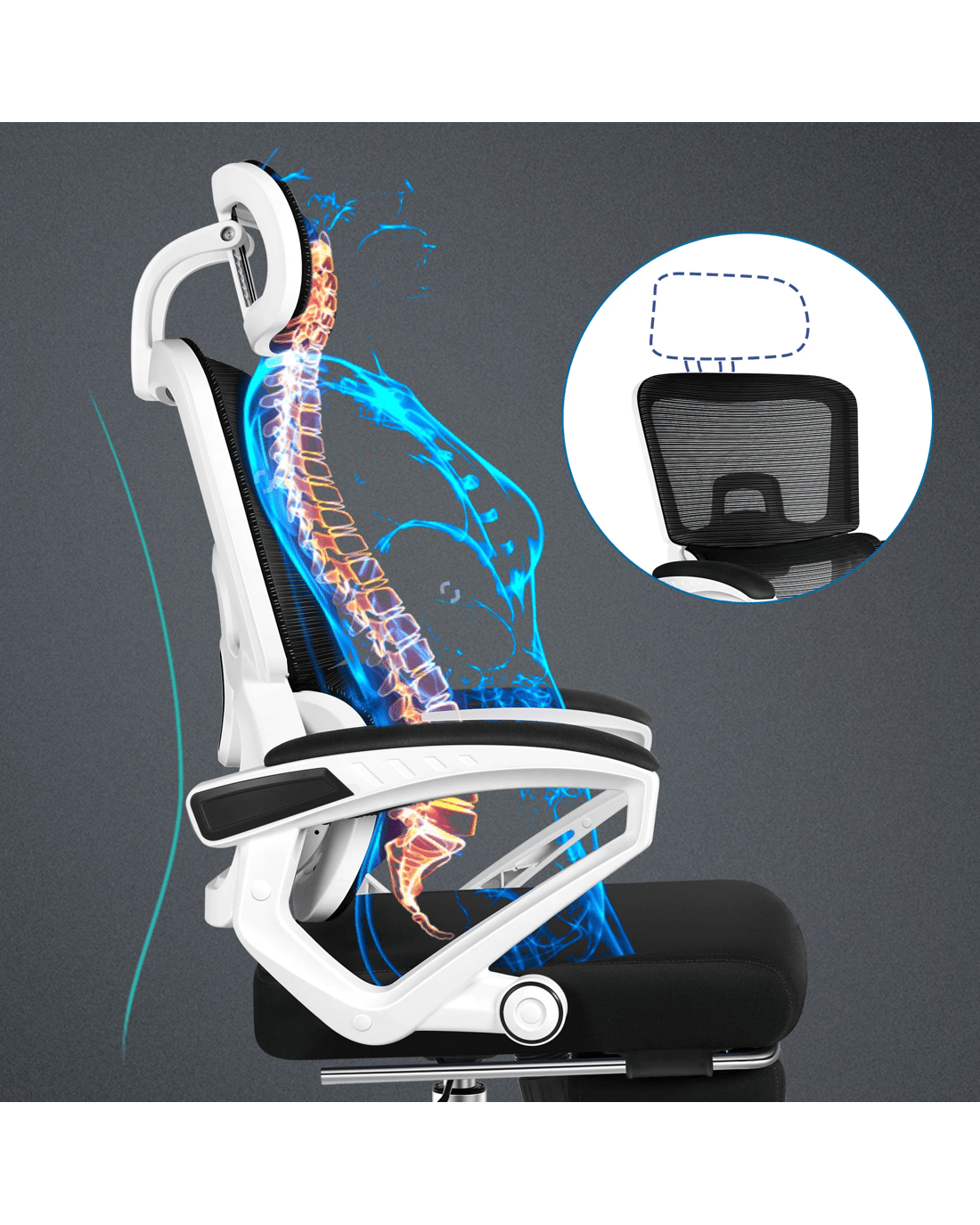 Featuring 2 strong lumbar coil springs for enhanced waist support, this mesh office chair eliminates lumbar fatigue - no more aching backs after long hours of sitting. Paired with a fully adjustable wider headrest, it cradles your neck perfectly and helps solve the common pain of neck strain.