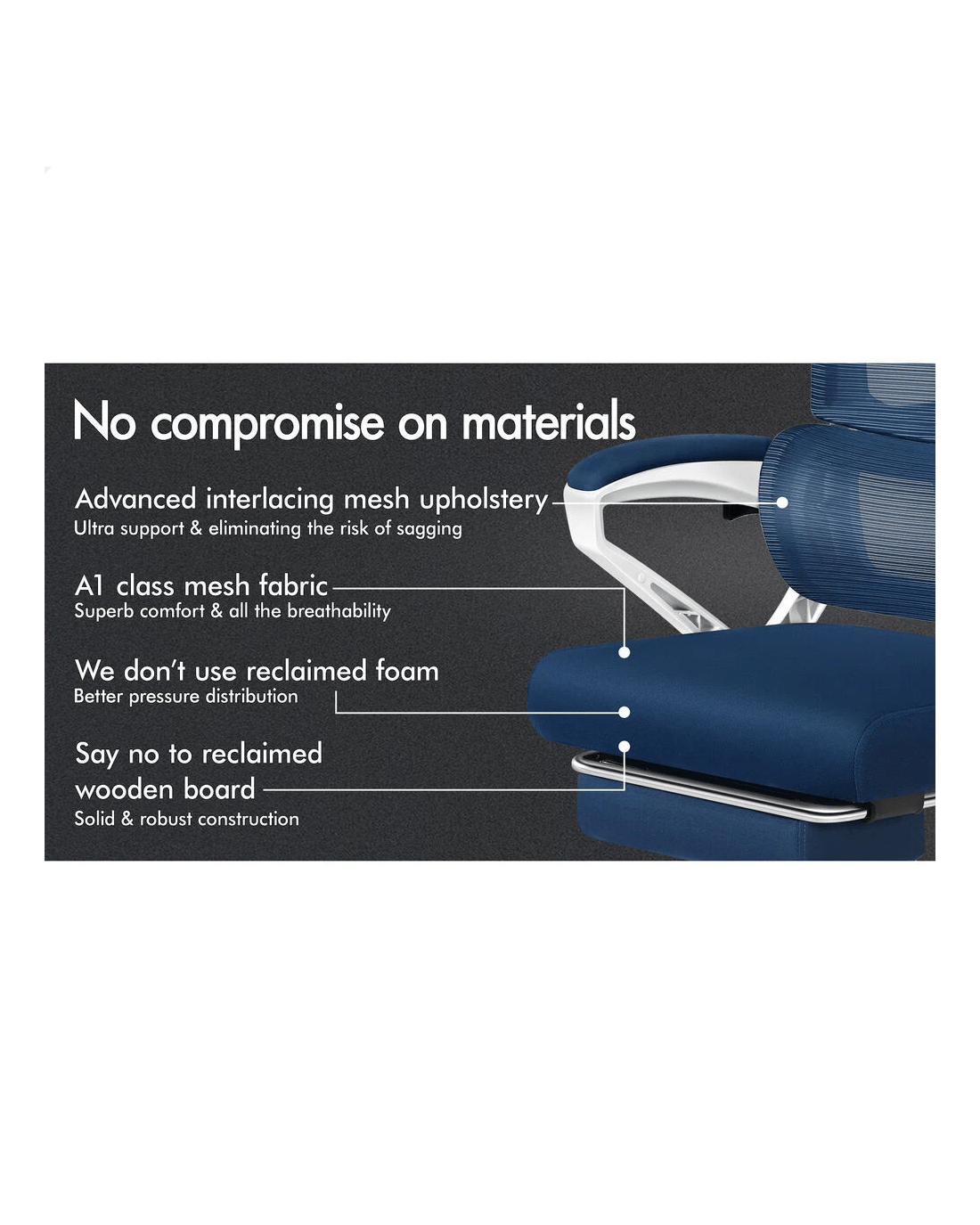 The Alfordson supreme mesh chair is born for professionals, smart working executives, who spend hours at desk every day. It is a unique reward for you, and an exclusive comfort at work.