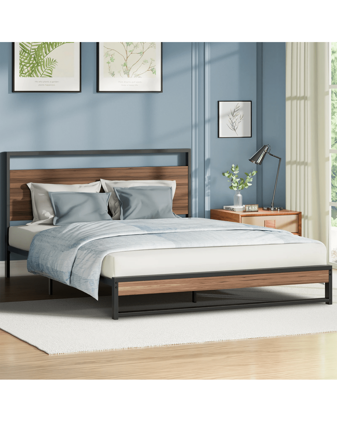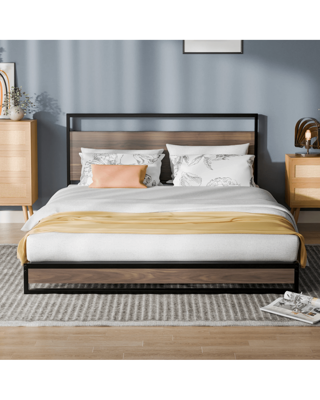 Rustic aesthetics - This platform bed features clean lines and a mixed-material look that rounds out your bedroom or guest room with an industrial style. The matching headboard and footboard also achieve an open, rectangular silhouette in industrial-modern style. The matte metallic texture of the frame also enhances its visual appeal, creating a sleek and stylish look that you are sure to love.