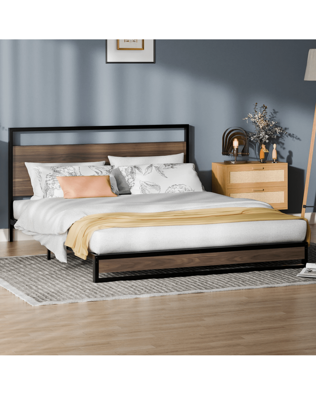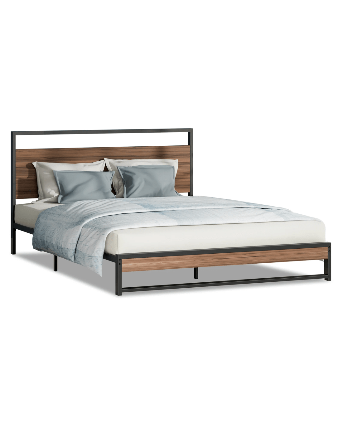 Sold by Aussie Union GroupAlfordson Metal Bed Frame Queen Size Industrial Platform Mattress Base - Wood - Natural