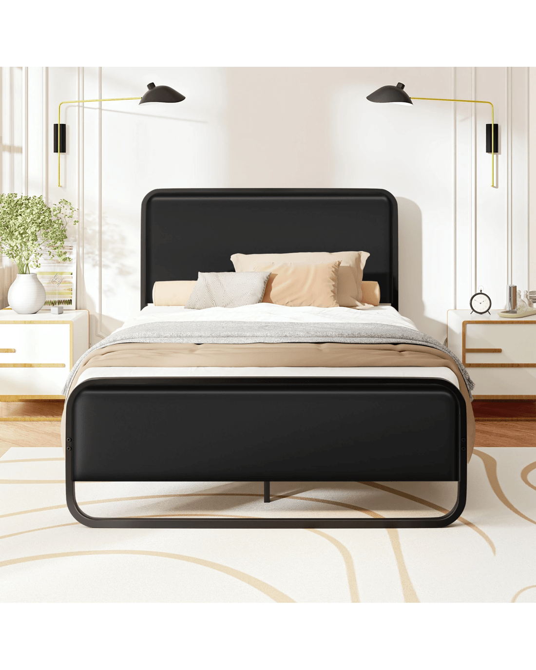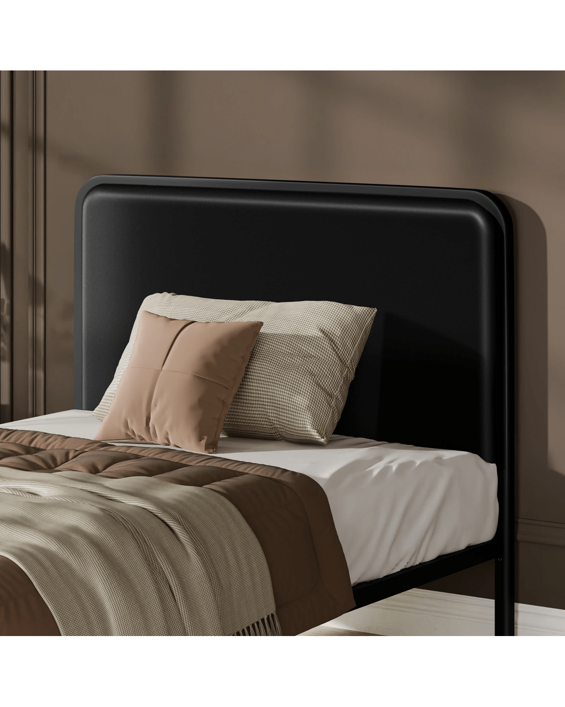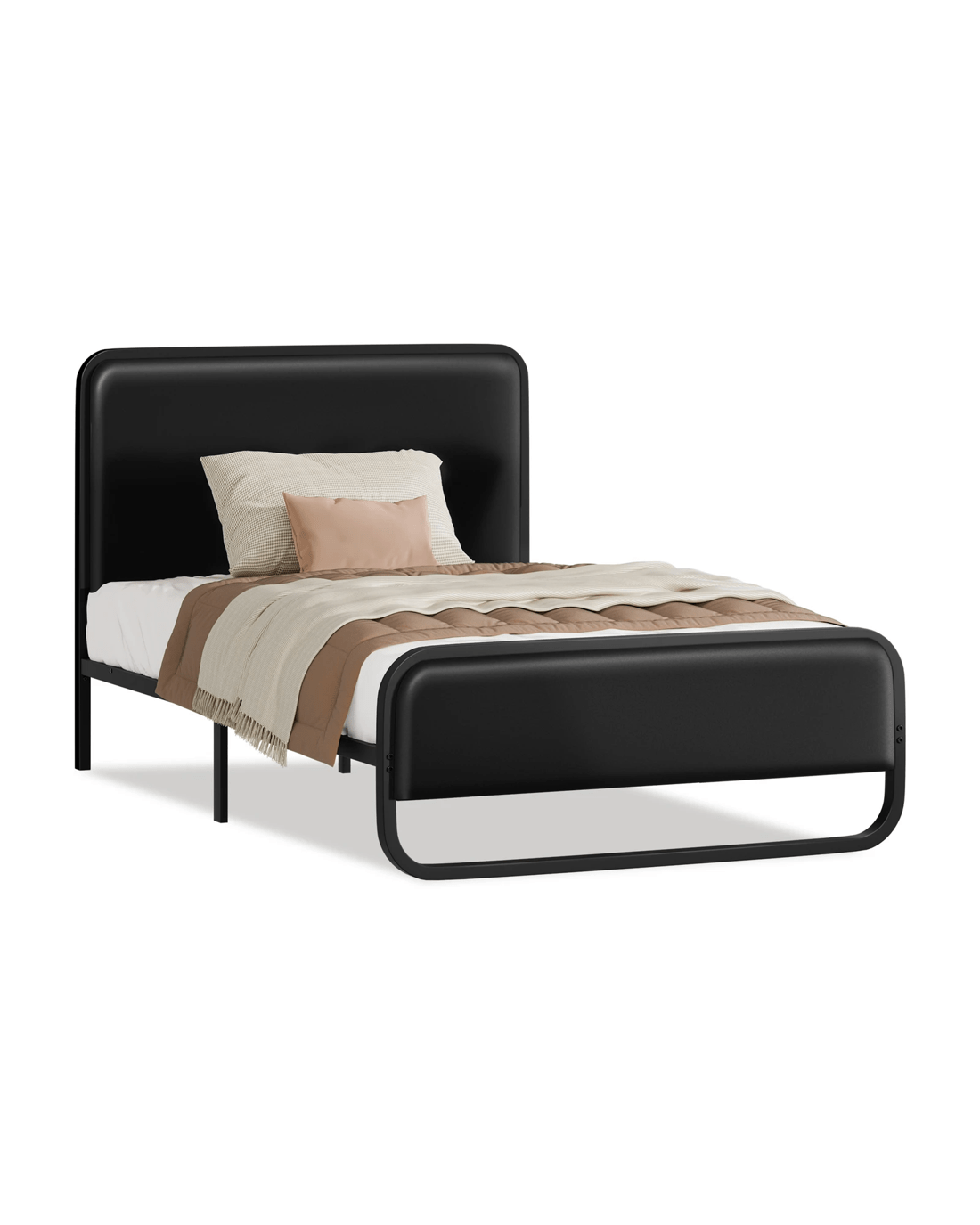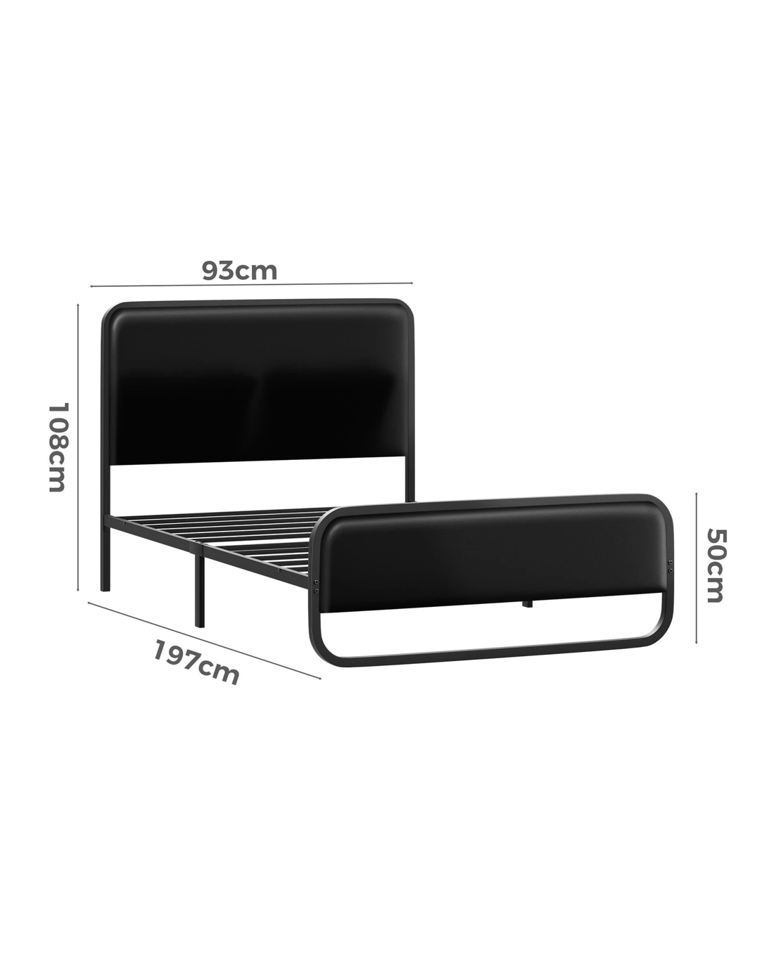 Alfordson Metal Bed Frame Single Size Upholstered Headboard Leather Madge - Black