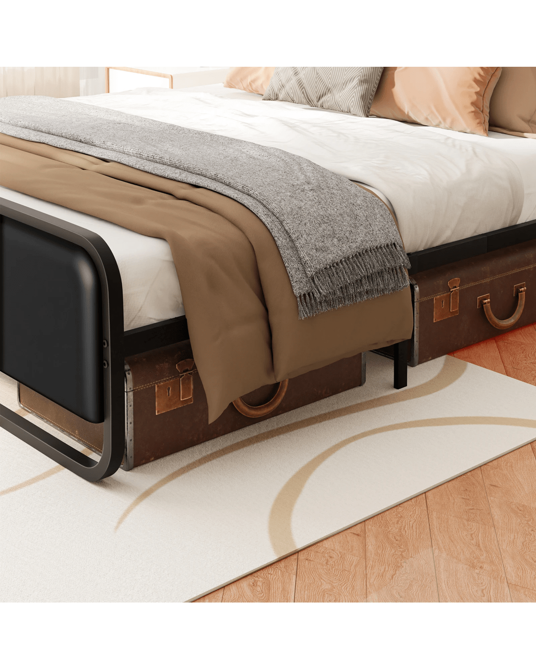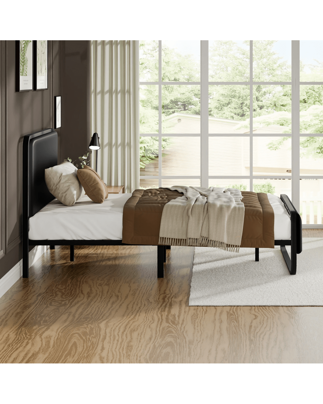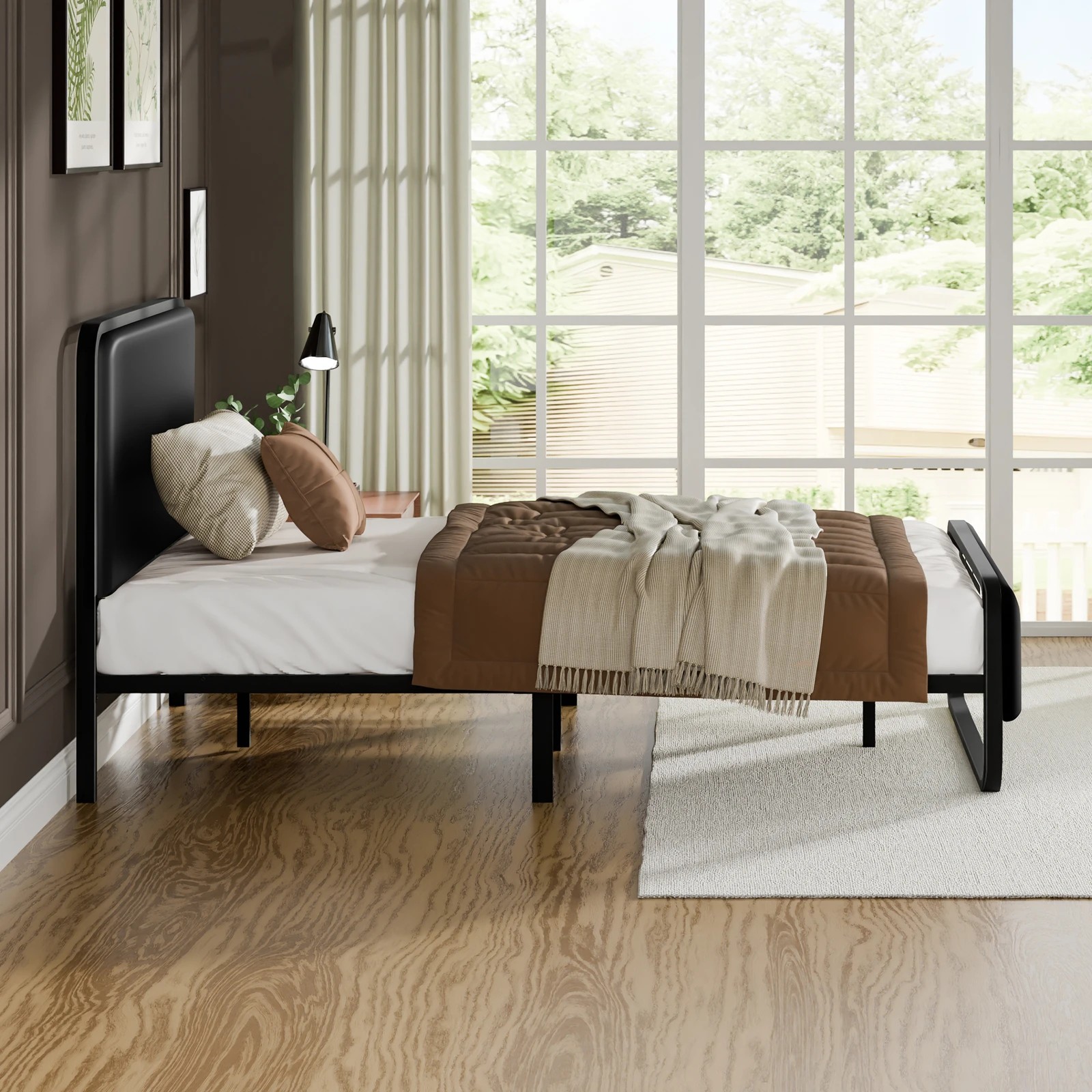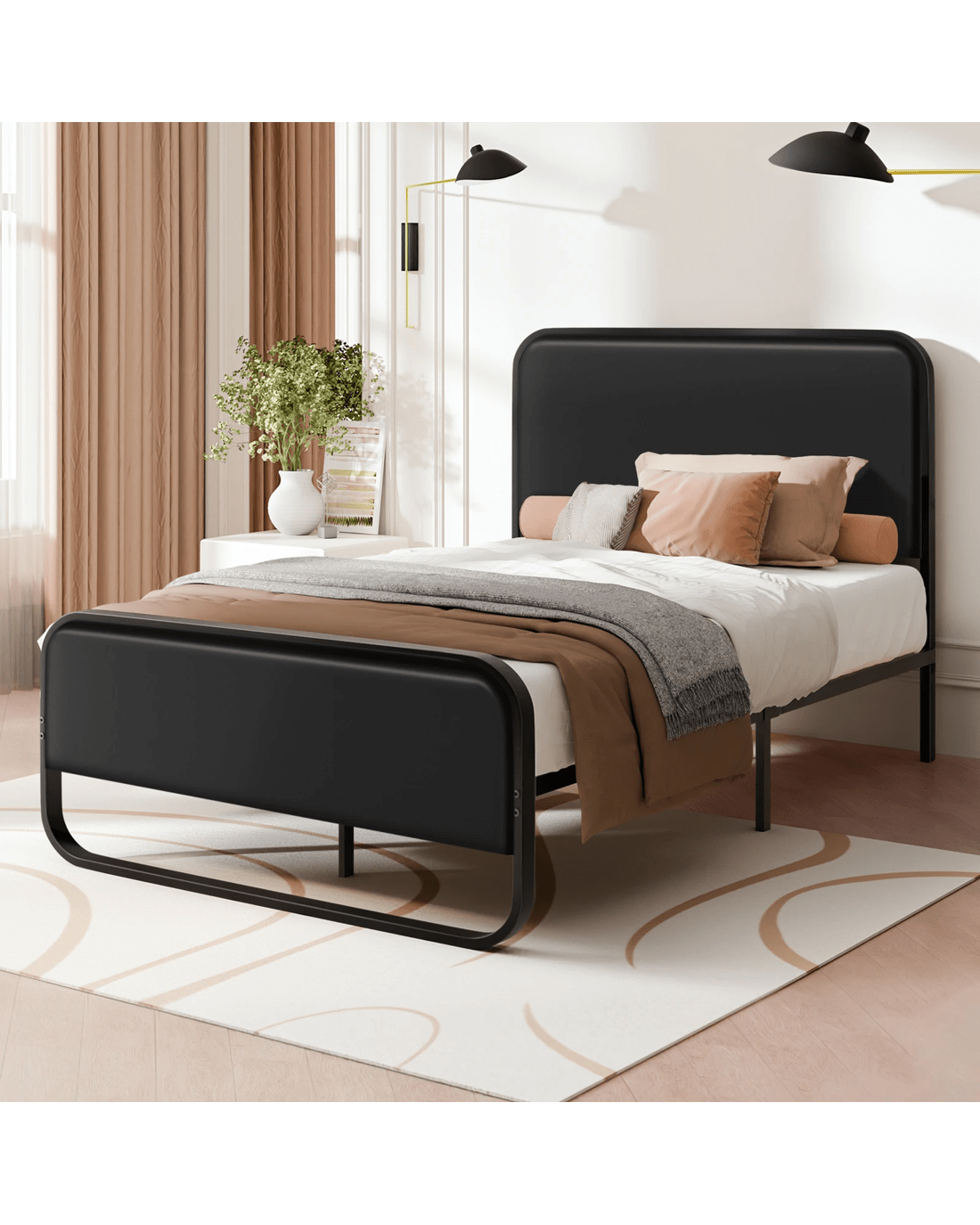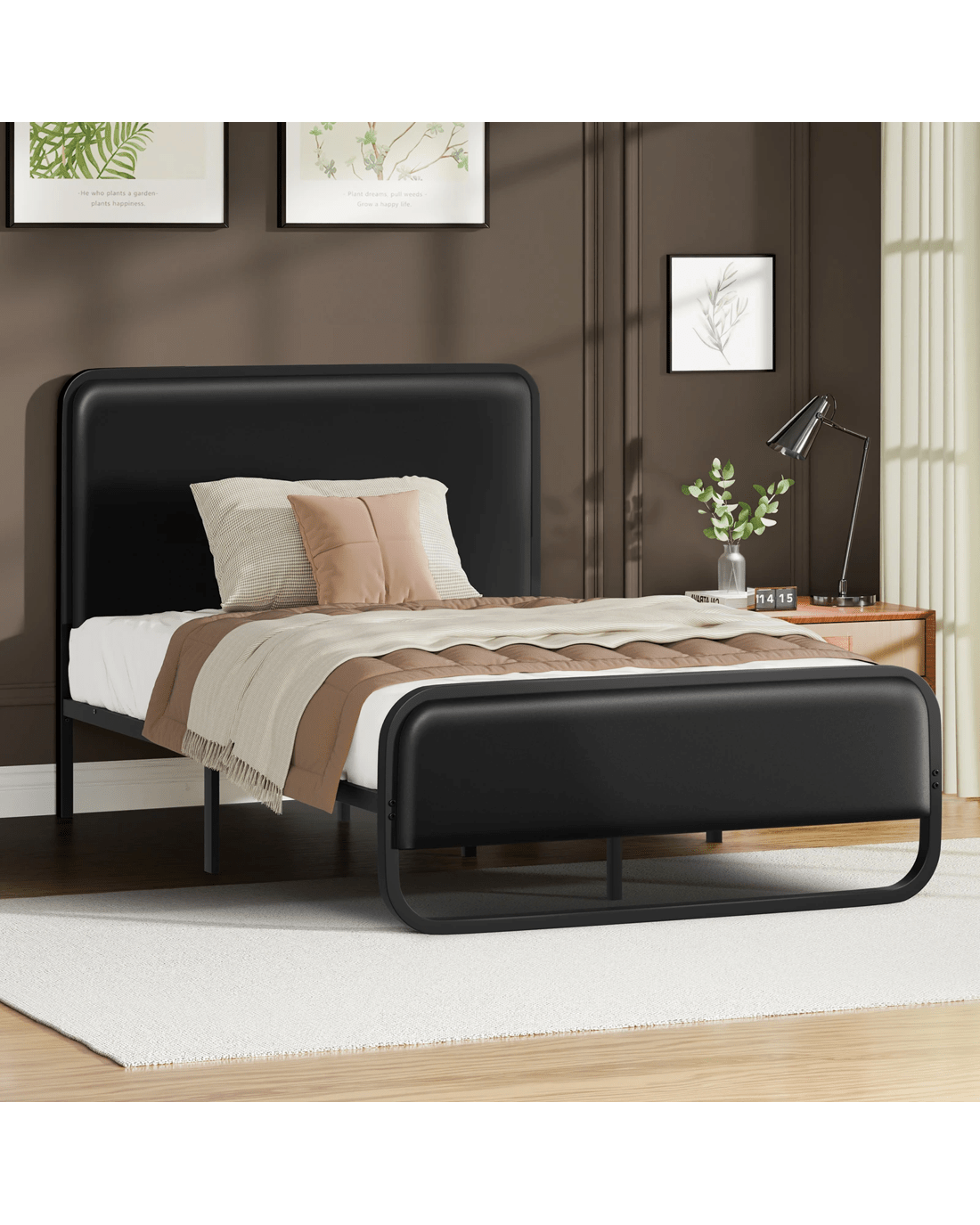 Alfordson Metal Bed Frame Single Size Upholstered Headboard Leather Madge - Black