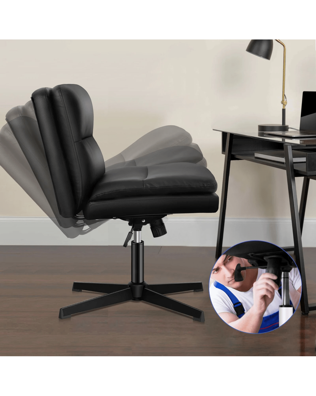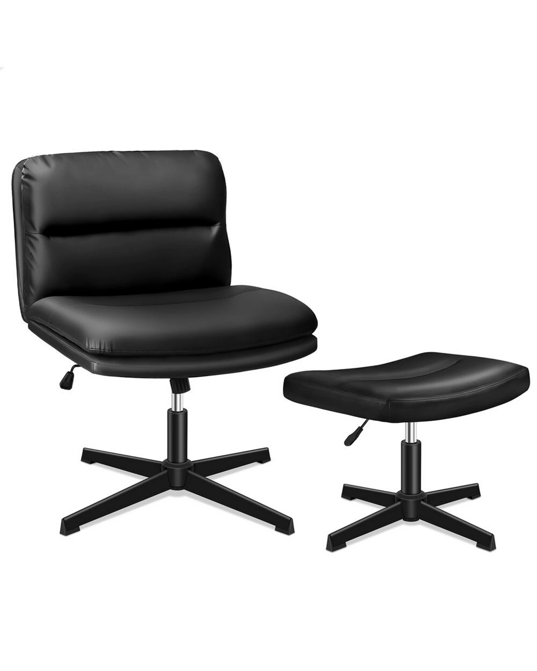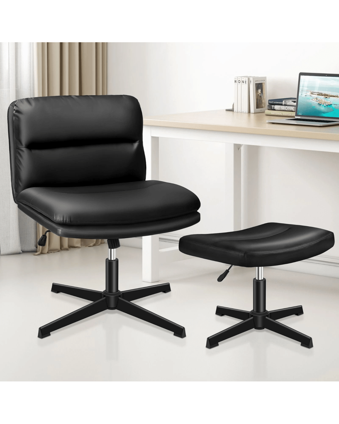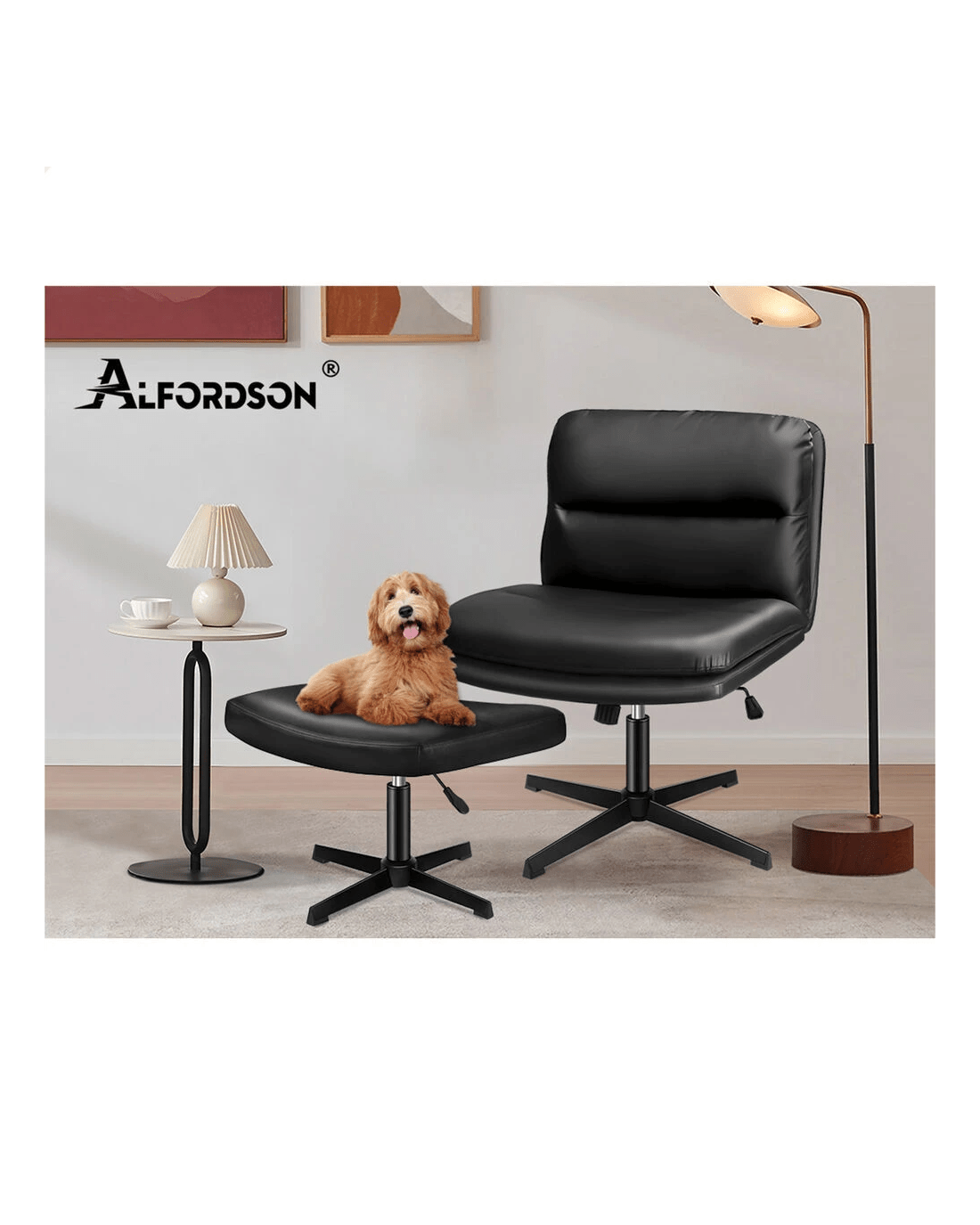 Sold by Aussie Union GroupAlfordson Office Chair Computer Cross-legged Seat Work Ottoman PU Leather - Black