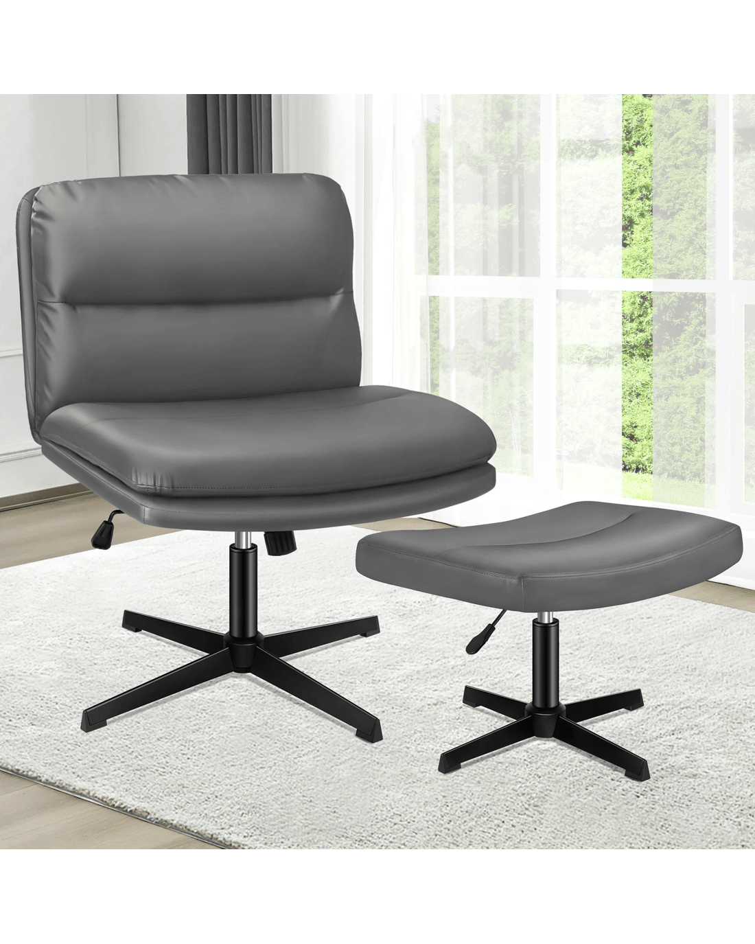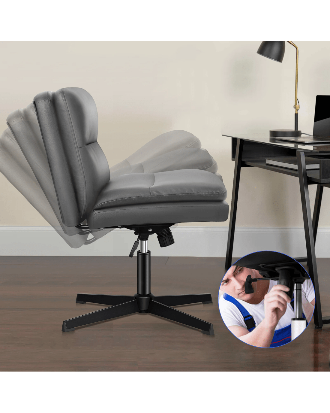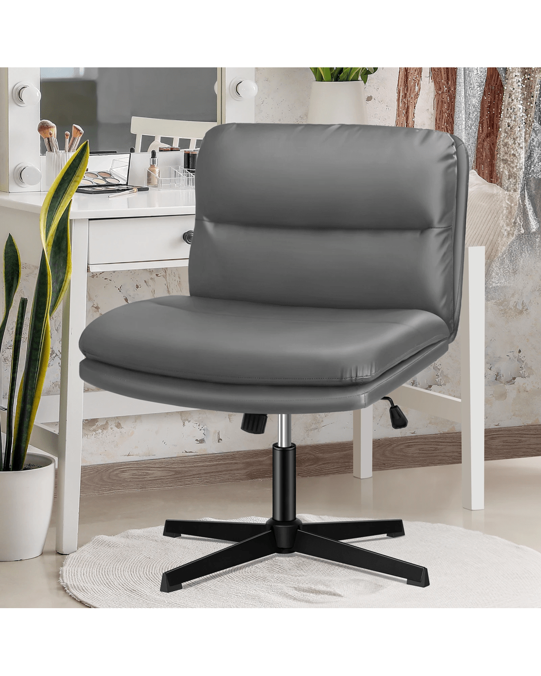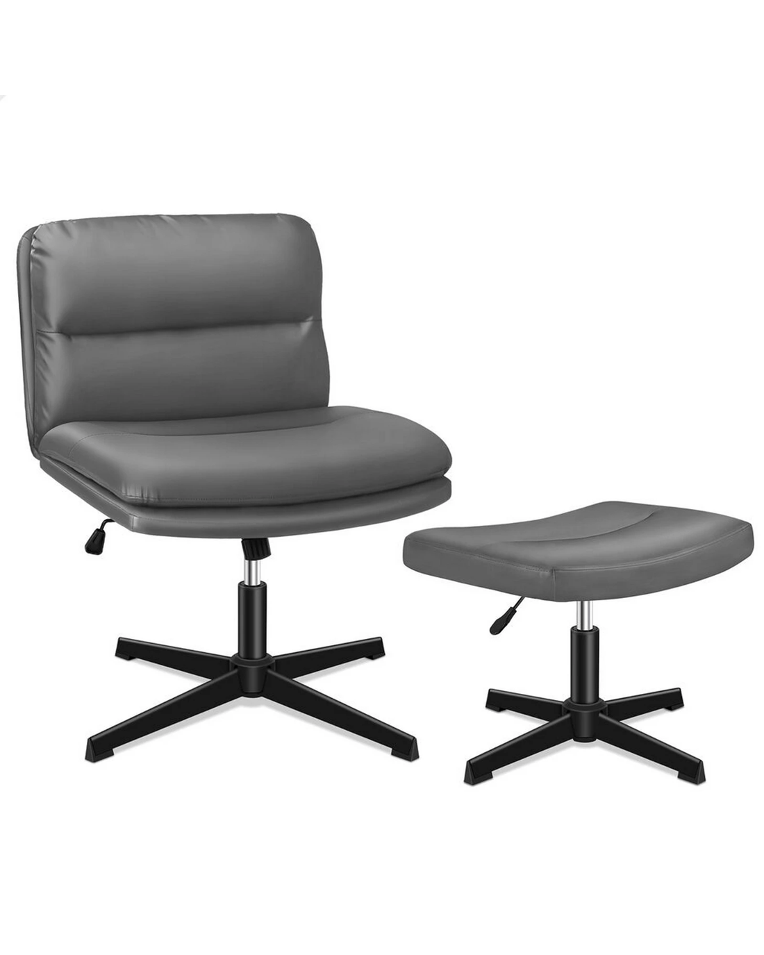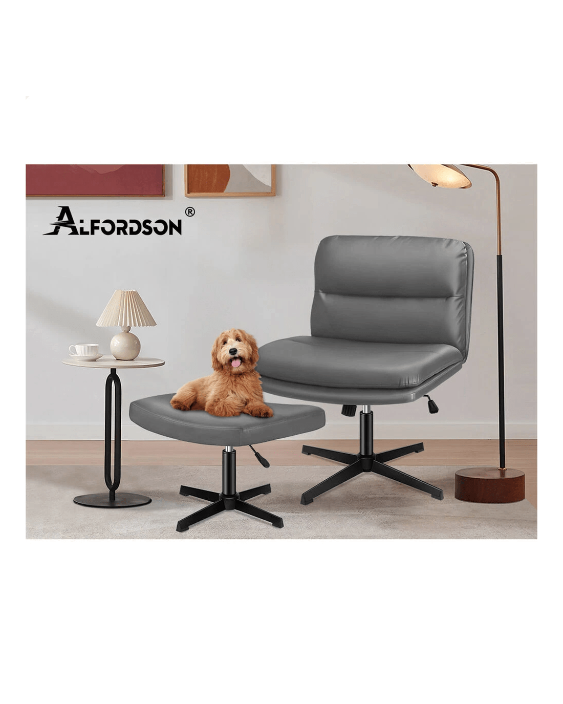 Sold by Aussie Union GroupAlfordson Office Chair Computer Cross-legged Seat Work Ottoman PU Leather - Grey