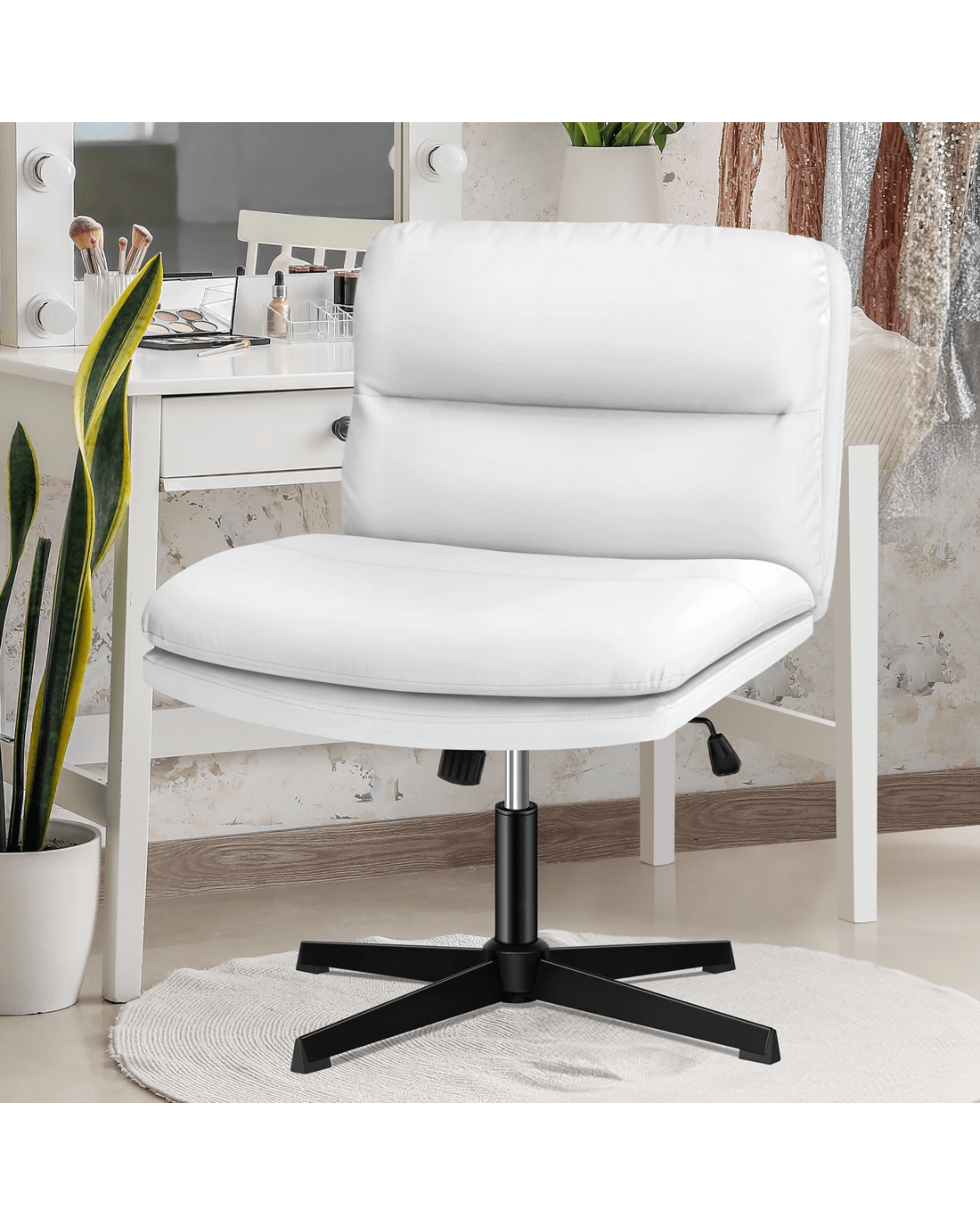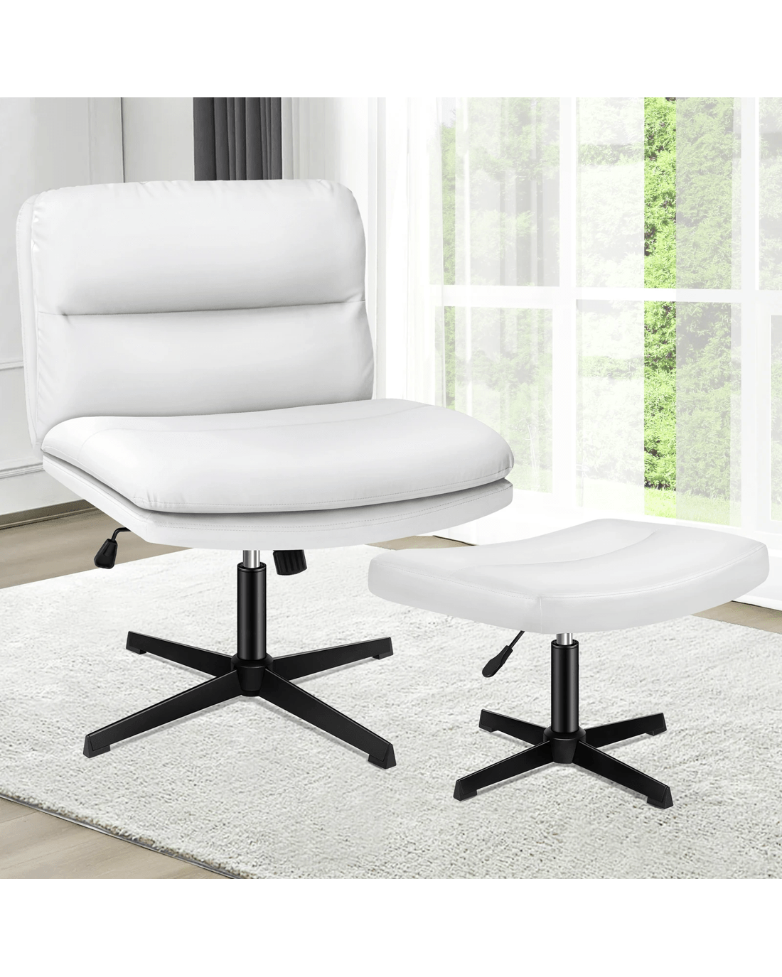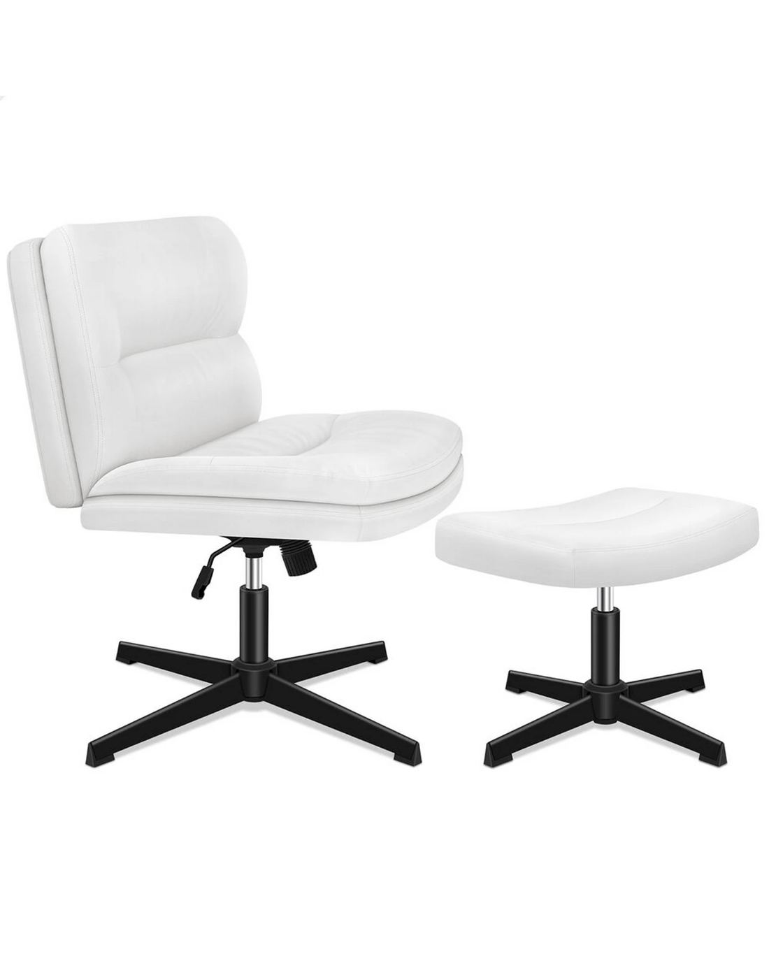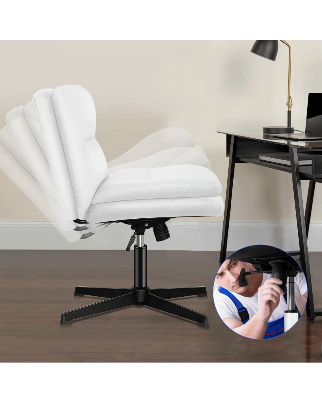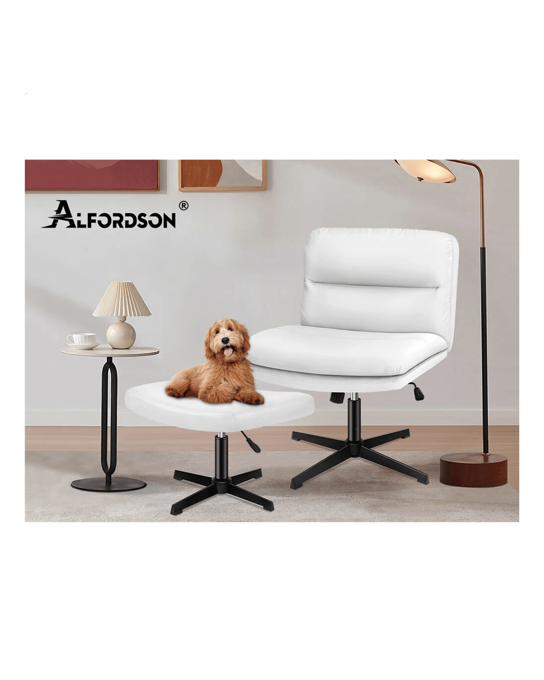 Sold by Aussie Union GroupAlfordson Office Chair Computer Cross-legged Seat Work Ottoman PU Leather - White