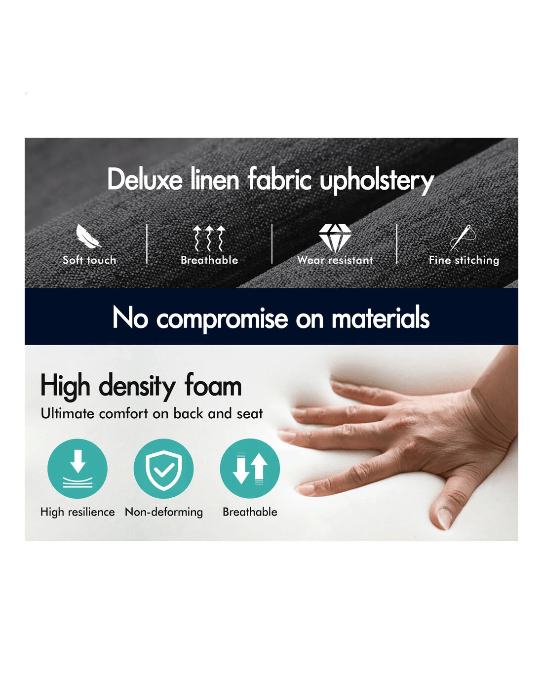 Upholstered from deluxe linen fabric and generous foam paddings, this computer chair ensures optimal comfort and durability. The curved edges on backrest and seat contour to your body, providing ergonomically support.