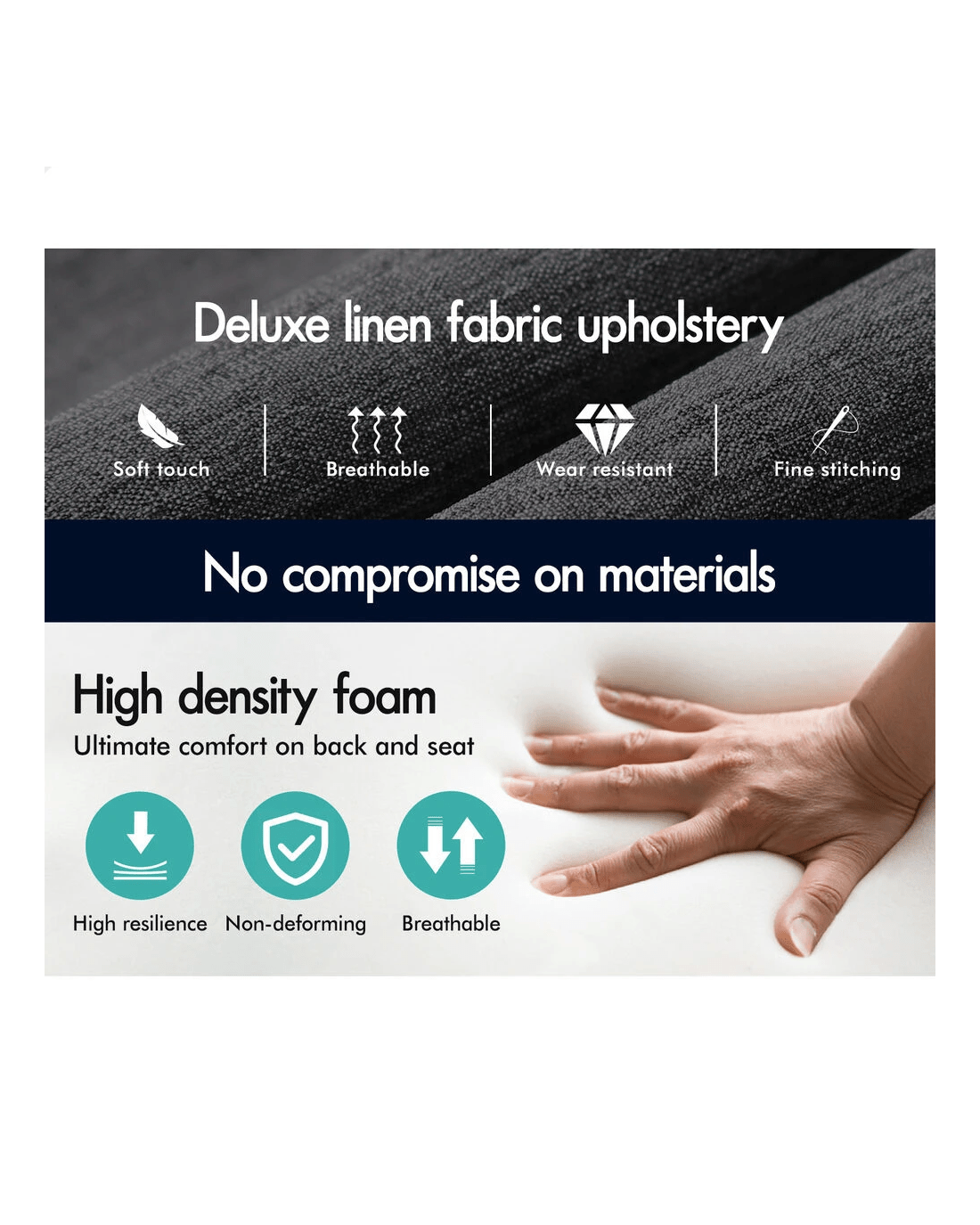 Upholstered from deluxe linen fabric and generous foam paddings, this computer chair ensures optimal comfort and durability. The curved edges on backrest and seat contour to your body, providing ergonomically support.