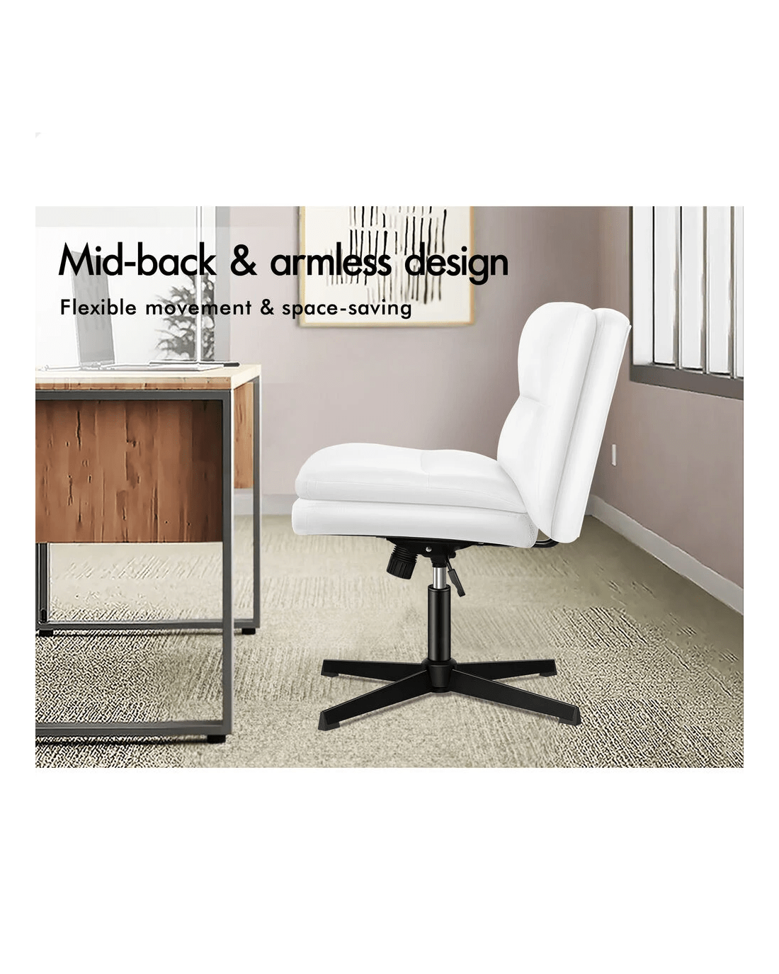 * Mid-back and armless design for flexibility and space-saving