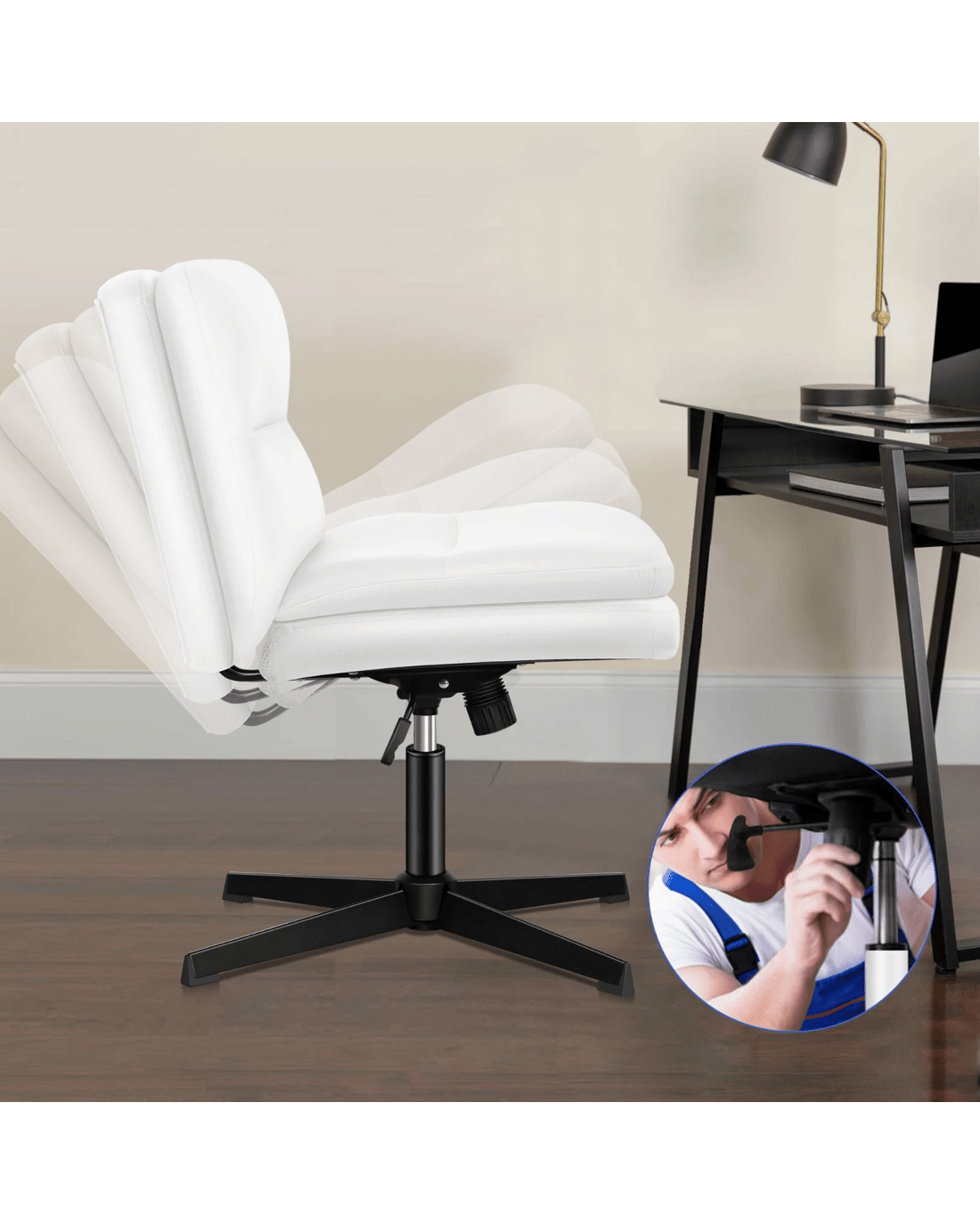 Whether you're typing, playing games or taking a quick break, the tilt mechanism assists you to find the perfect position. You can enjoy the tilt function when you want to relax, and you can also lock it in place when you need to sit upright and focus. Constructed with a sturdy criss-cross chrome base and Gas-Lift system, the desk chair is endurable. You don't have to worry about tipping over or exploding. The 360 degree swivel and height adjustable seat adds more convenience.