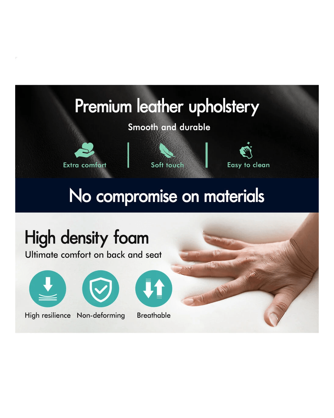 * Seat material: PU Leather, resilience foam, wooden board