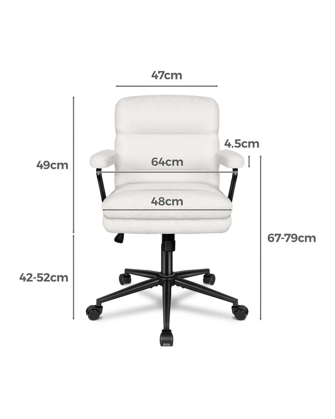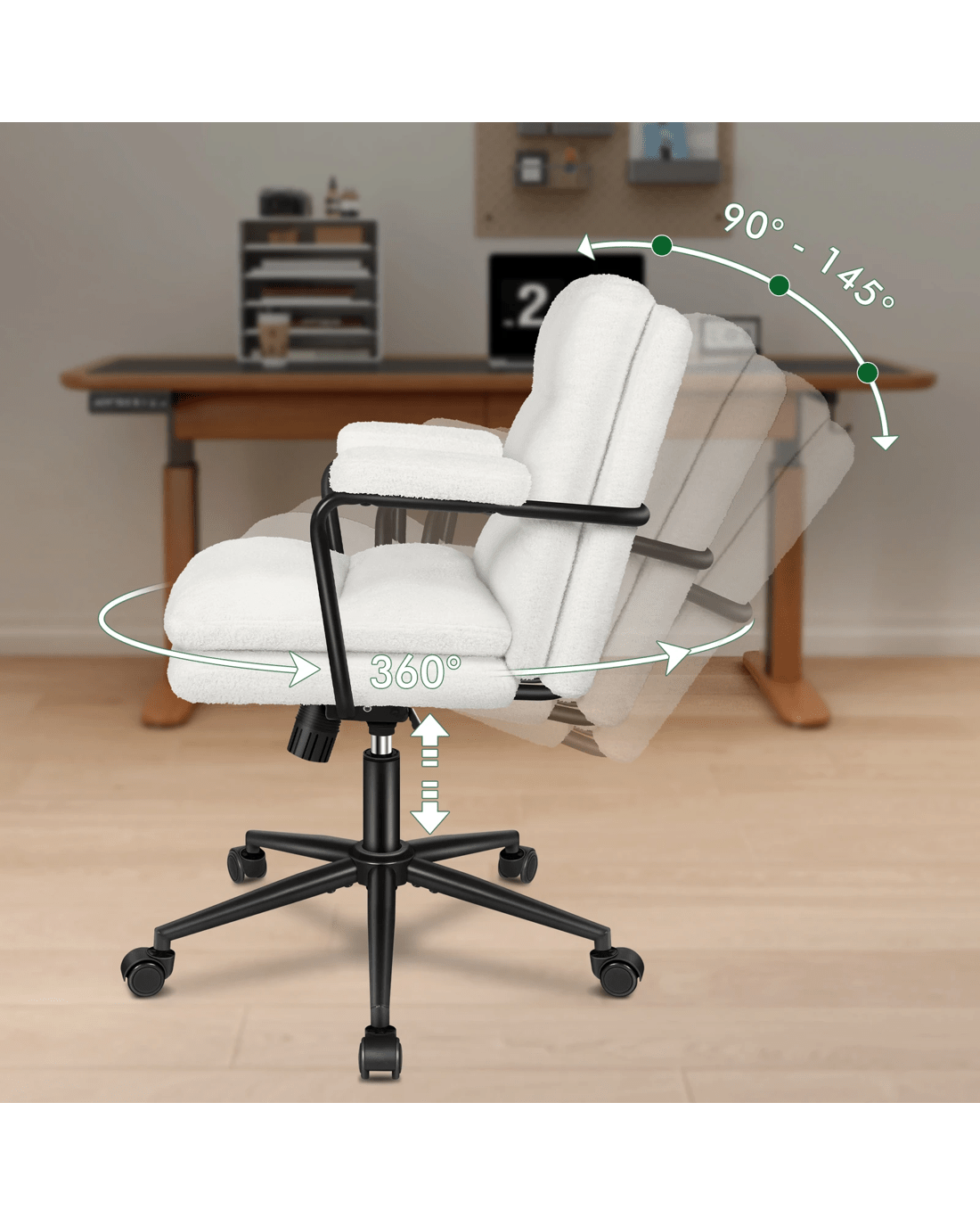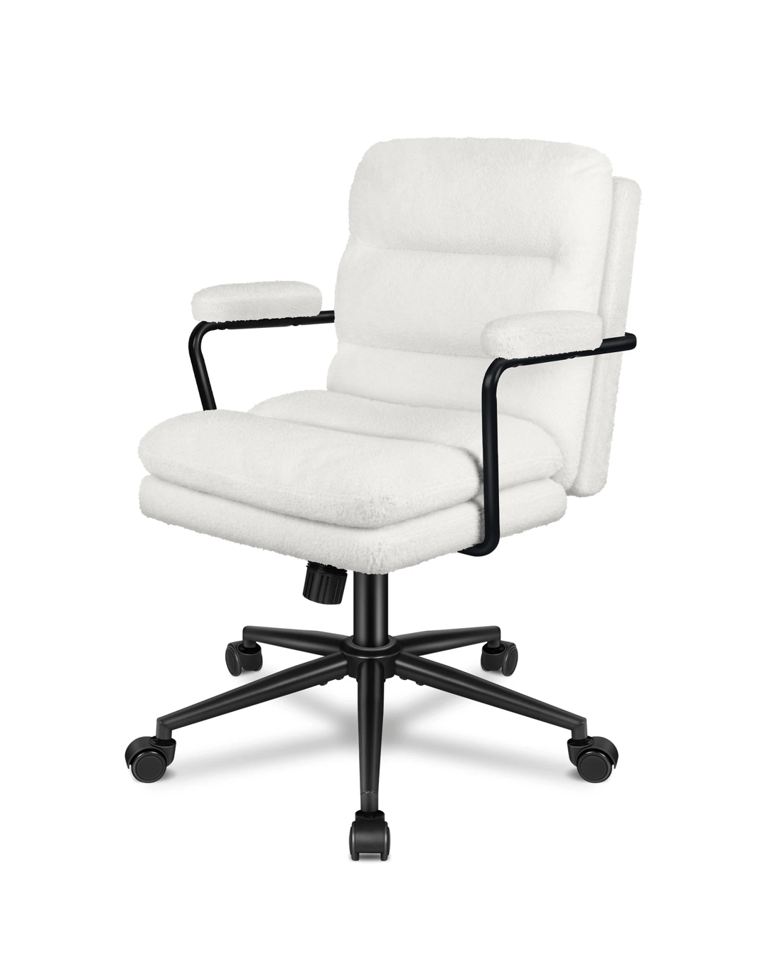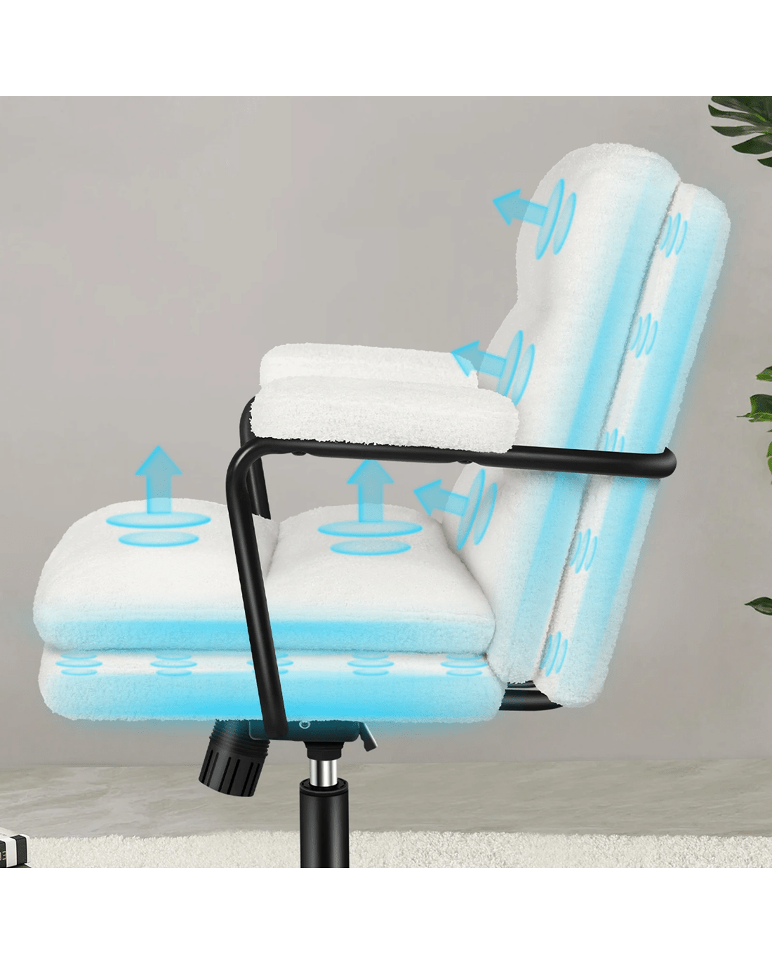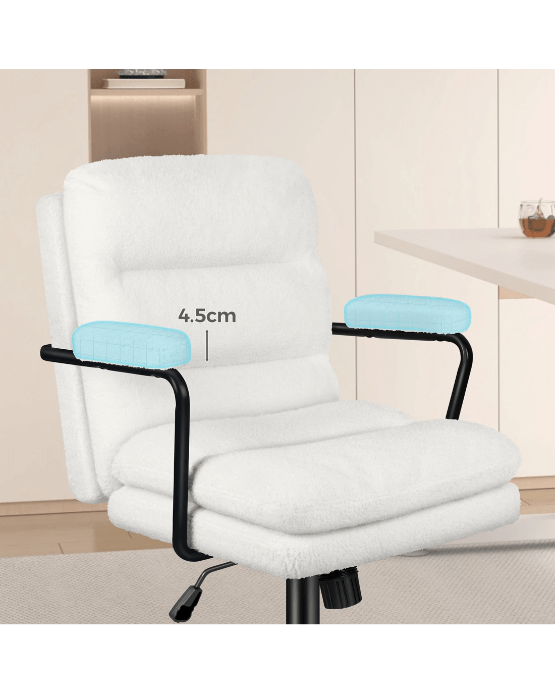 The modern concise design of this office swivel chair will soften any interior or decor you may currently have in your home or office. Upholstered in premium boucle fabric, the dual-layer seat and backrest are richly padded with high-resilience foam. The padded seat provides adequate support in the right places and infinite comfort whenever you want to rest and sit in the chair. Its ergonomic flared armrests design cradle your arms in a natural position, relieving unnecessary shoulder and arm strain and staying at your peak for long periods of time in optimal comfort.