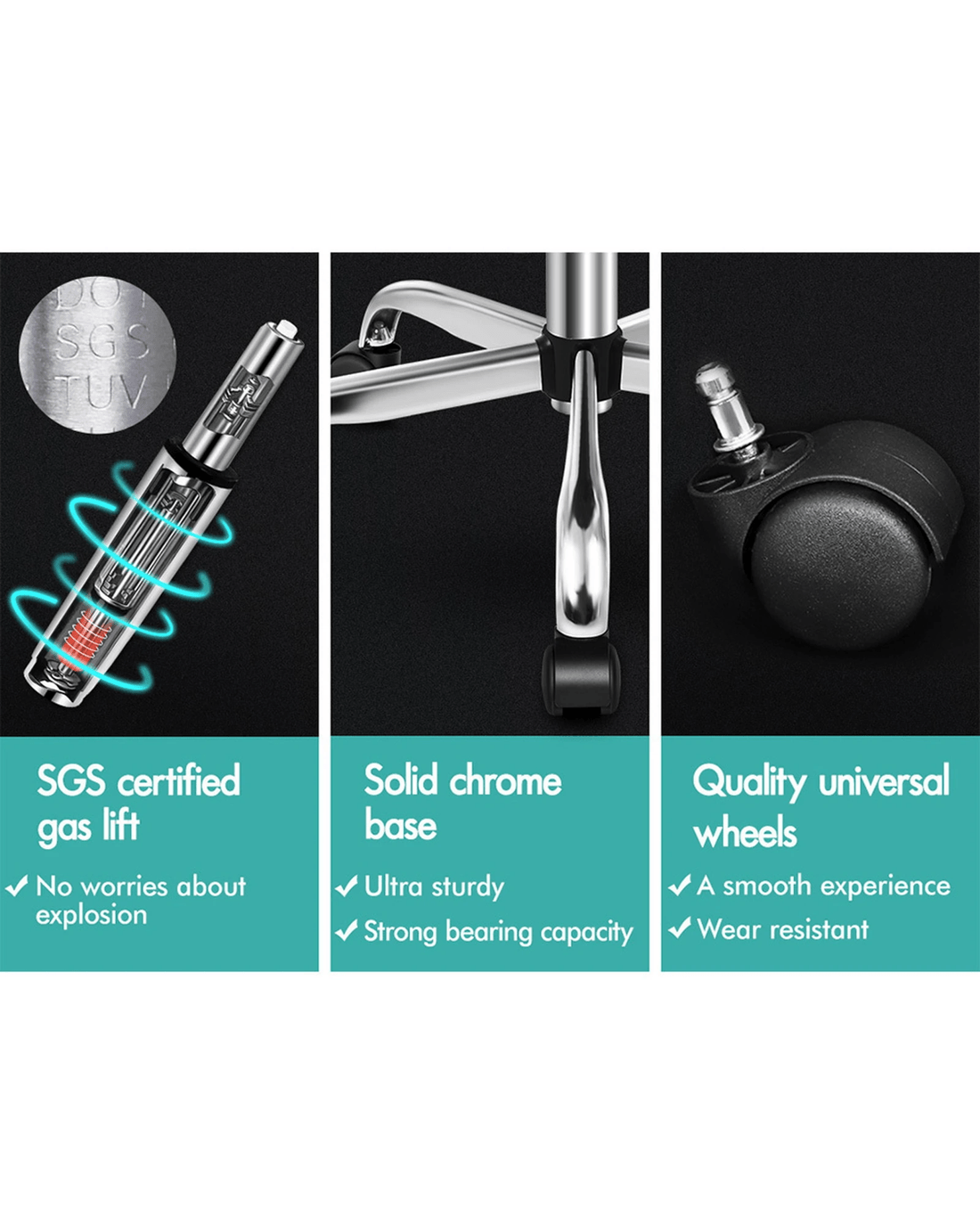 Constituted with a sturdy chrome base, the chair is endurable. You don't have to worry about tipping over or exploding. Better still, the shiny chrome base and footrest complement the modern design. The 360 degree swivel and height adjustable seat adds more convenience. 360 degree casters provide mobility, meanwhile keep the floor away from being scratched.