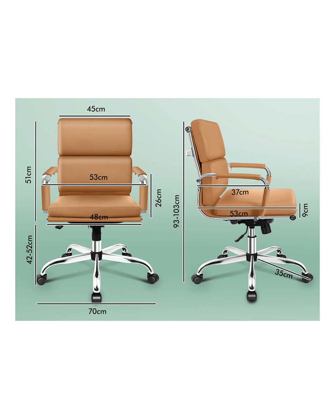 The modern concise design of this office chair will soften any interior or decor you may currently have in your home or office. Upholstered in premium PU leather, the seat and backrest are richly padded with high-resilience foam. The padded seat provides adequate support in the right places and infinite comfort whenever you want to rest and sit in the chair. Its ergonomic S-curve design fully contours your body shape, allowing you to work or play at your peak for long periods of time in optimal comfort.