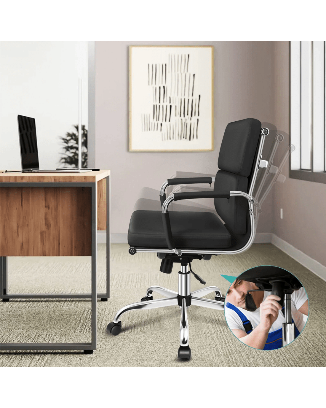 Alfordson Office Chair Ergonomic Paddings Executive Computer Work Seat Mid Back - Black