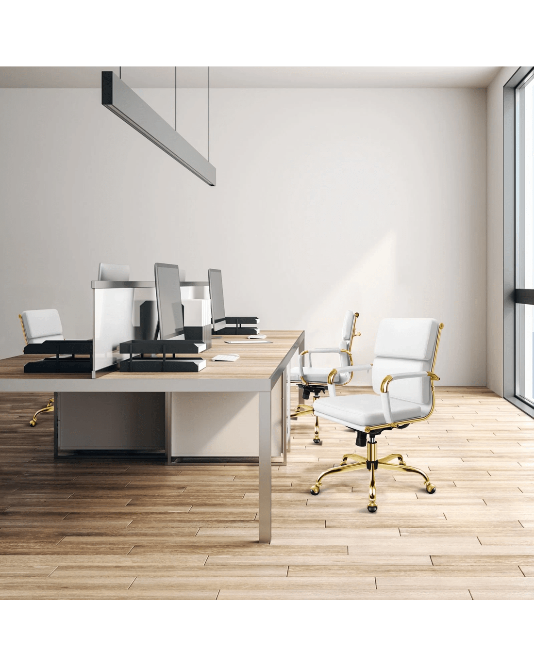 The modern concise design of this office chair will soften any interior or decor you may currently have in your home or office. Upholstered in premium PU leather, the seat and backrest are richly padded with high-resilience foam. The padded seat provides adequate support in the right places and infinite comfort whenever you want to rest and sit in the chair. Its ergonomic S-curve design fully contours your body shape, allowing you to work or play at your peak for long periods of time in optimal comfort.