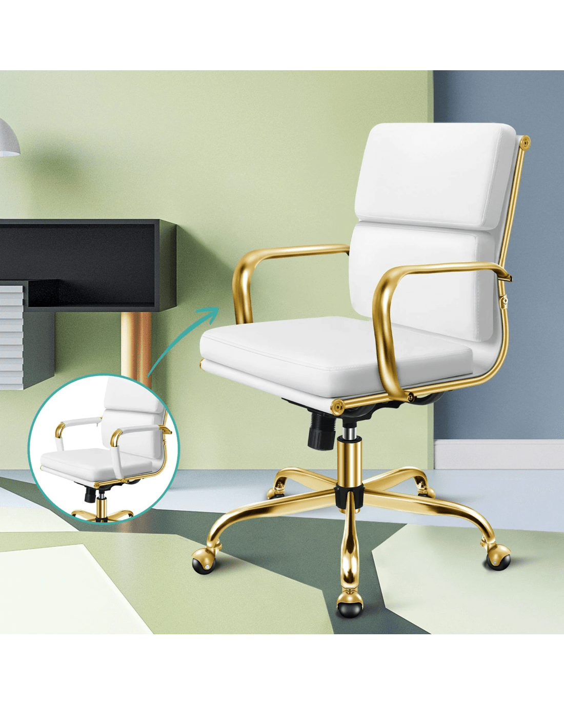 Sold by Aussie Union GroupAlfordson Office Chair Ergonomic Paddings Executive Computer Work Seat Mid Back - White
