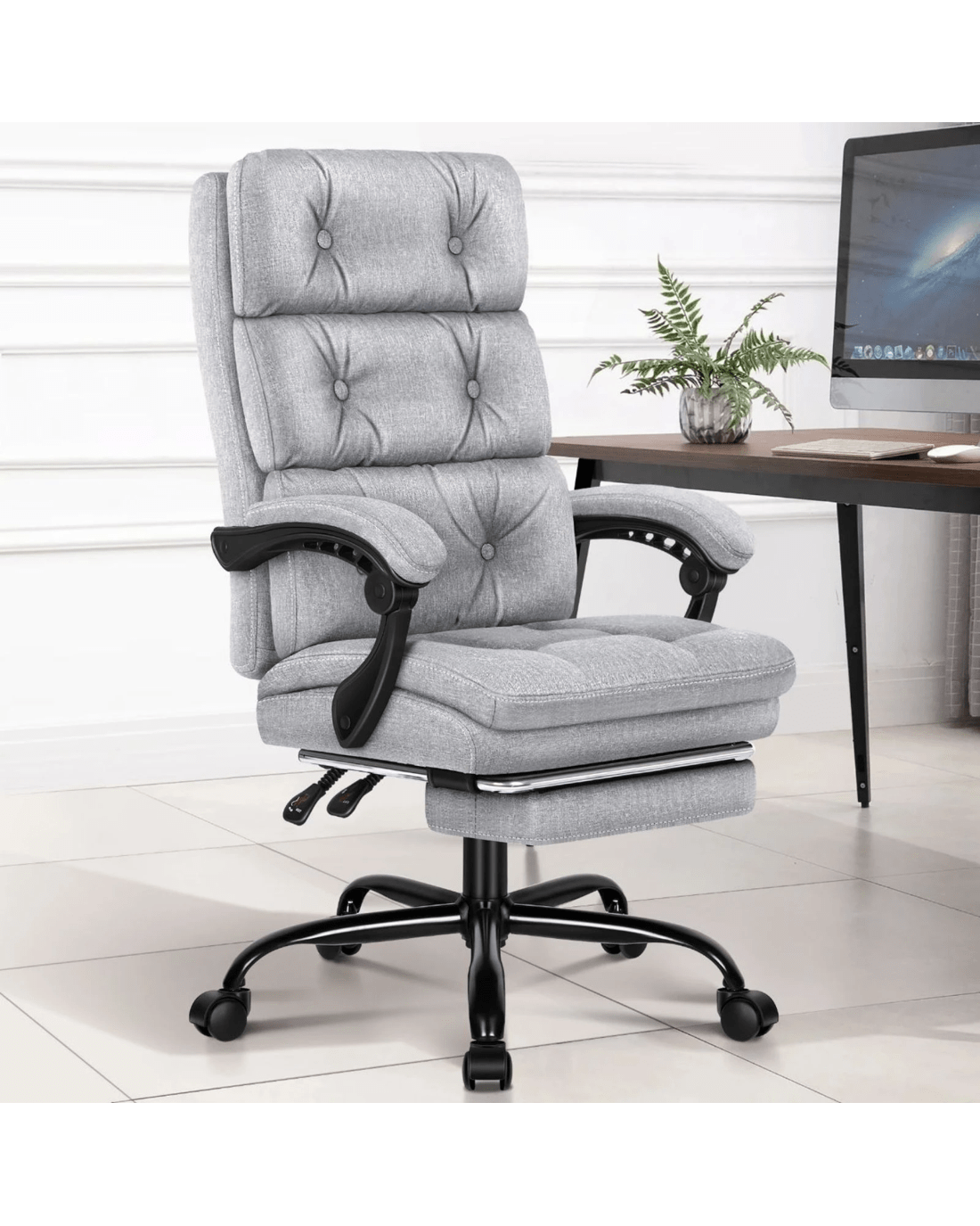 The Alfordson computer desk chair is an eternal model. It features a dual-layer back with luxurious foam paddings, to make sure you can indulge yourself each time sitting on it. Made with breathable & durable linen fabric, this modern reclining chair also enhances the atmosphere of the room it stays. An elite in quality and design, your solution to true comfort.
