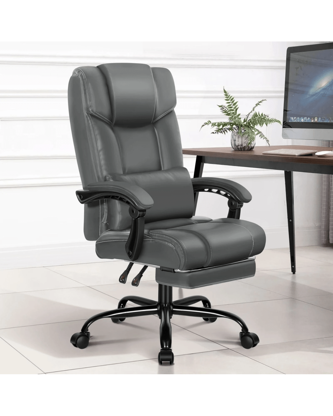 The Alfordson computer desk chair is an eternal model. It features a dual-layer back with luxurious foam paddings, to make sure you can indulge yourself each time sitting on it. Made with stylish glossy PU leather, this modern reclining chair also enhances the atmosphere of the room it stays. An elite in quality and design, your solution to true comfort.