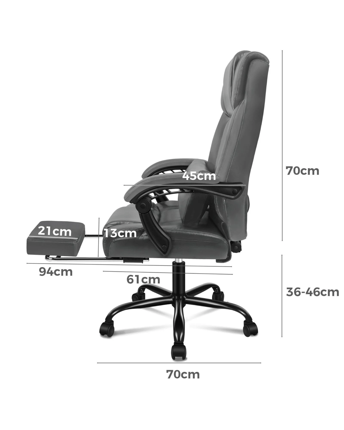 Sold by Aussie Union GroupAlfordson Office Chair Executive Computer Gaming PU Leather Seat Recliner - Grey