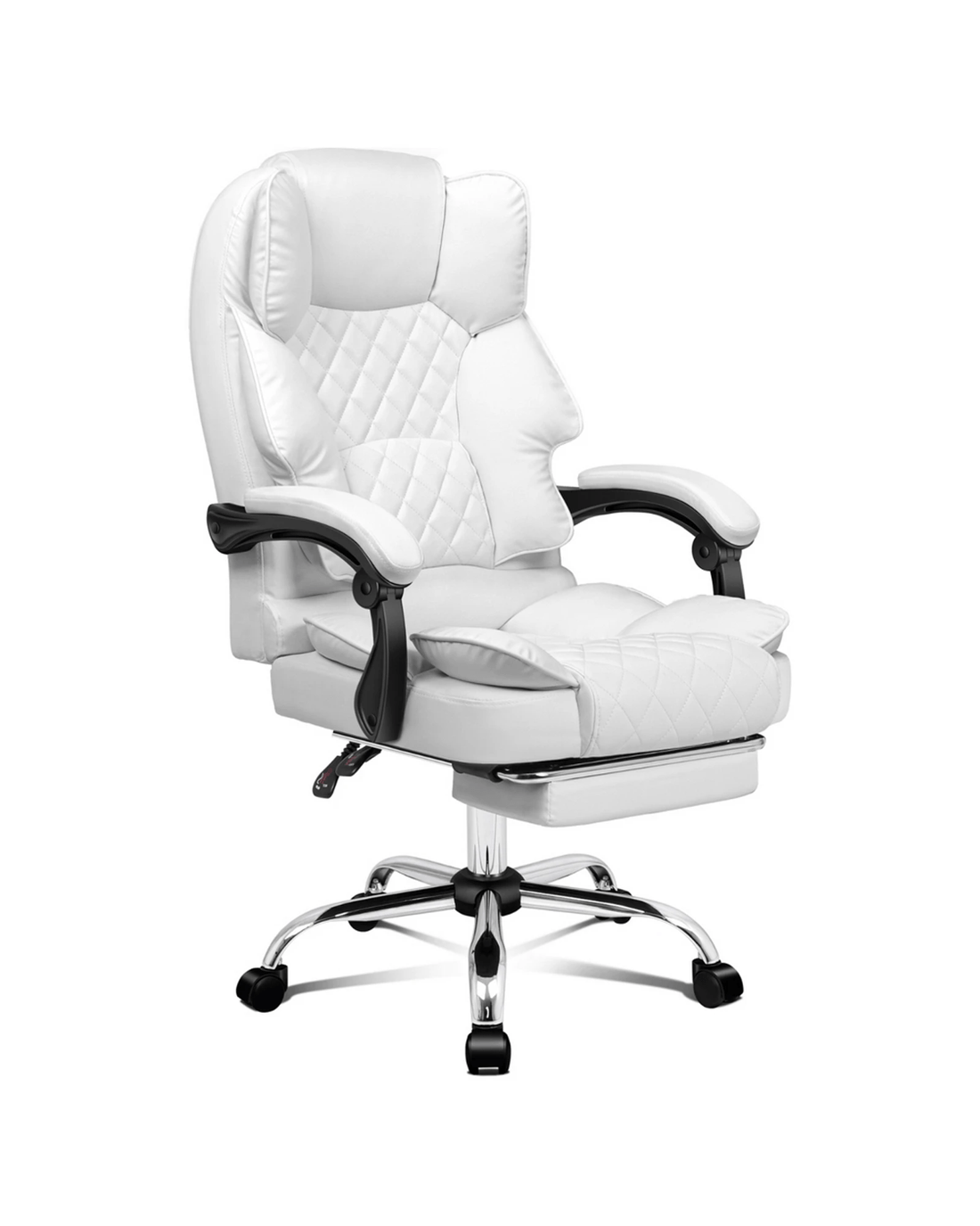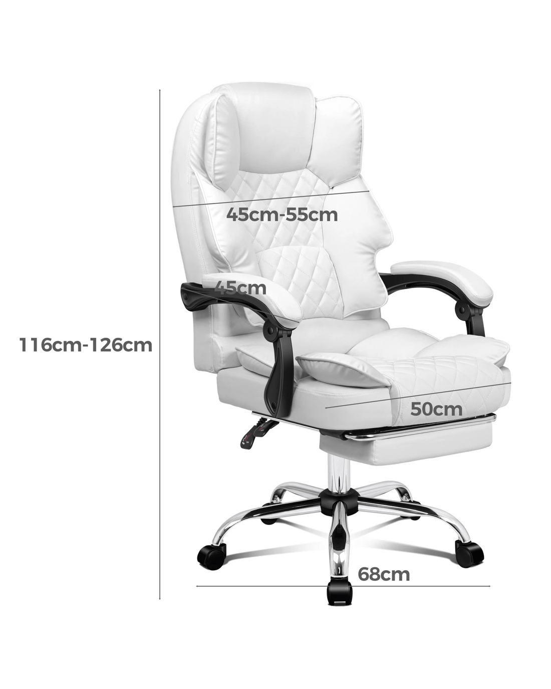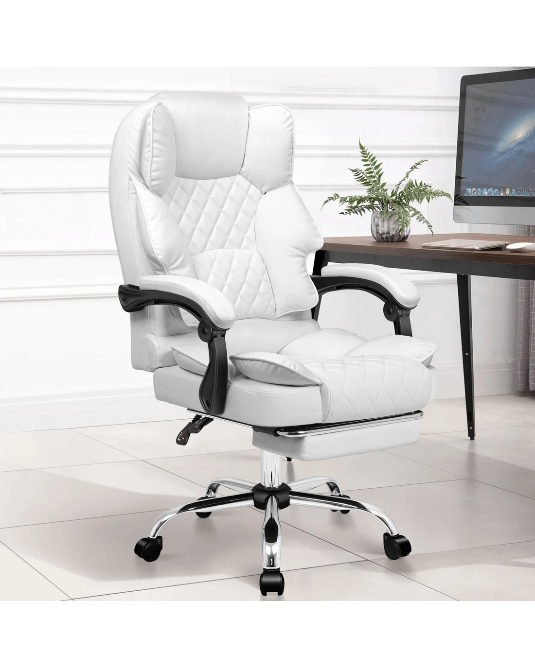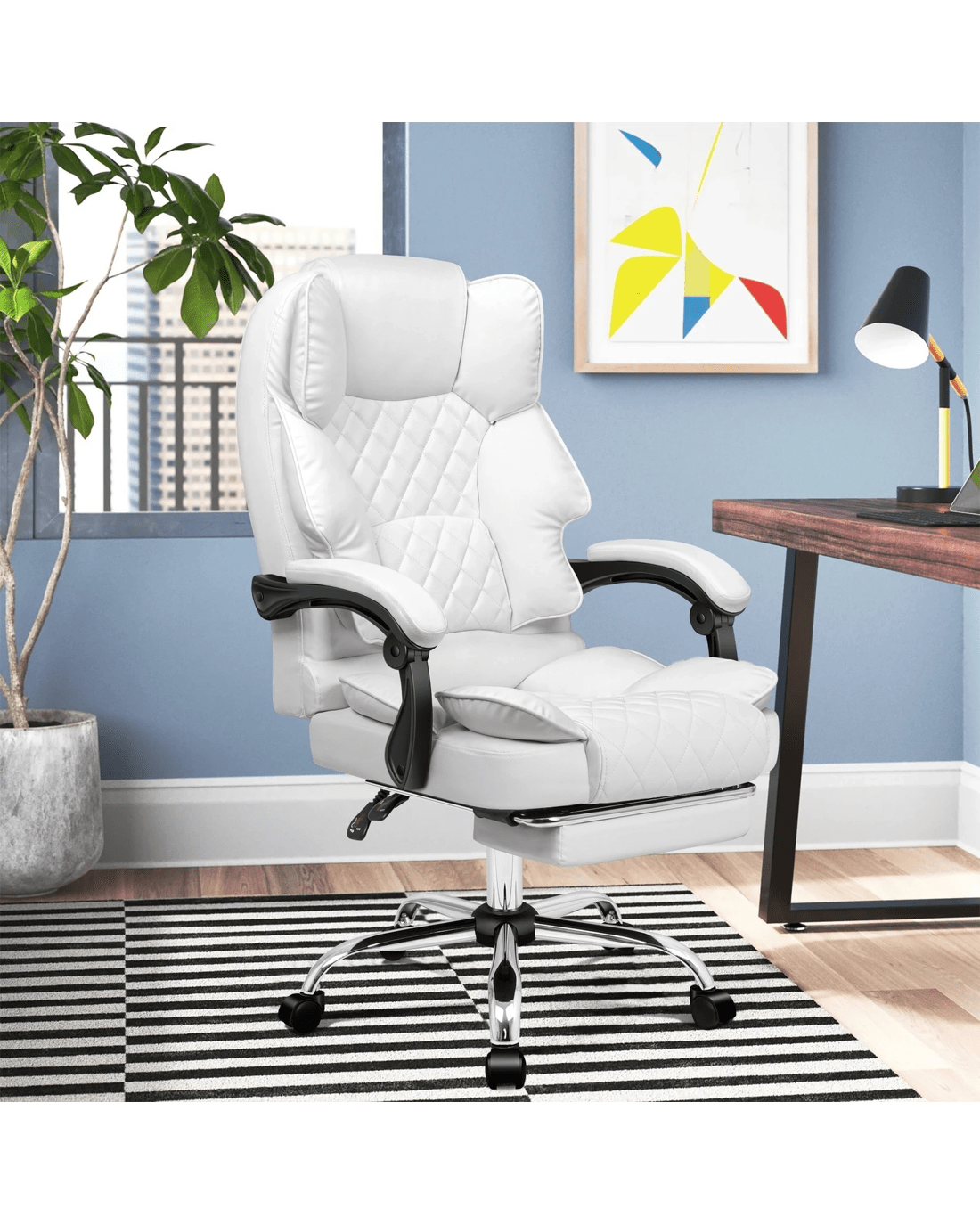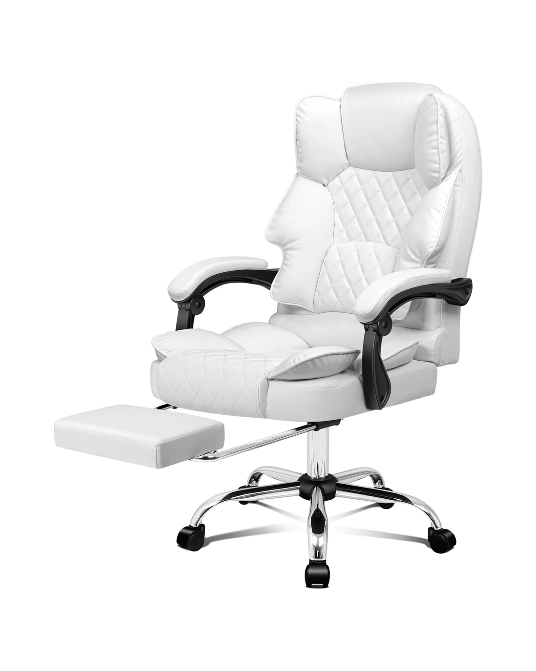 Alfordson Office Chair Gaming Executive Computer PU Leather Seat Recliner - White